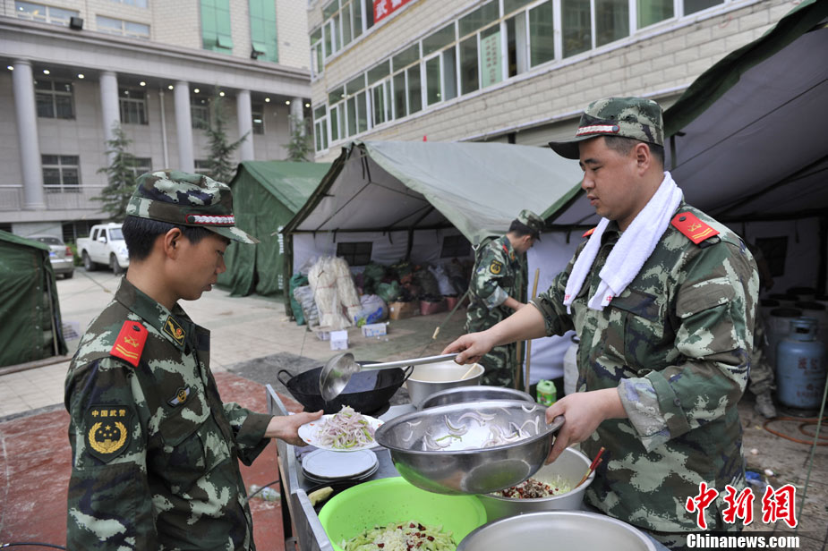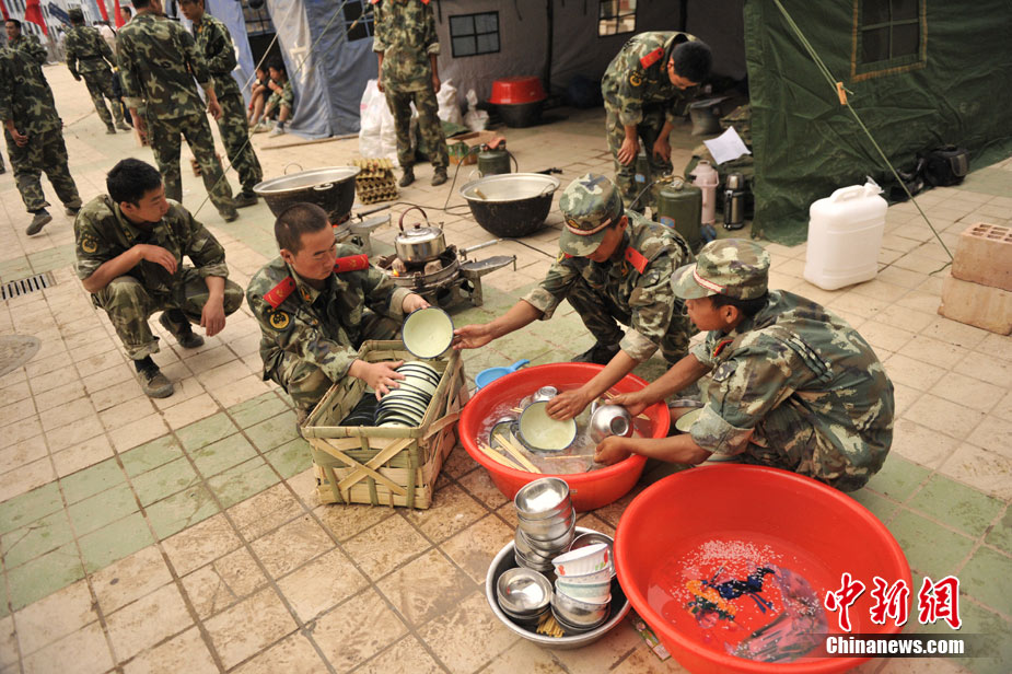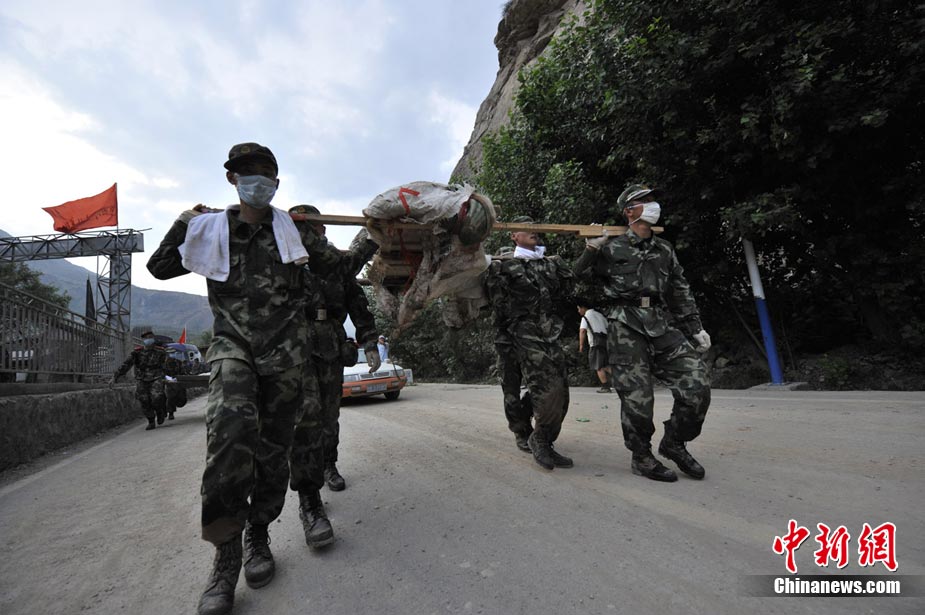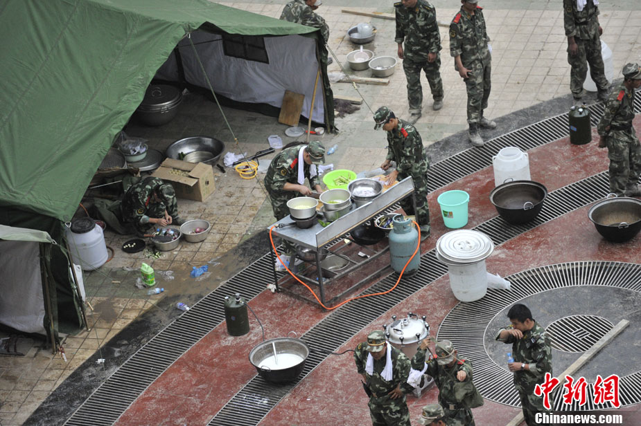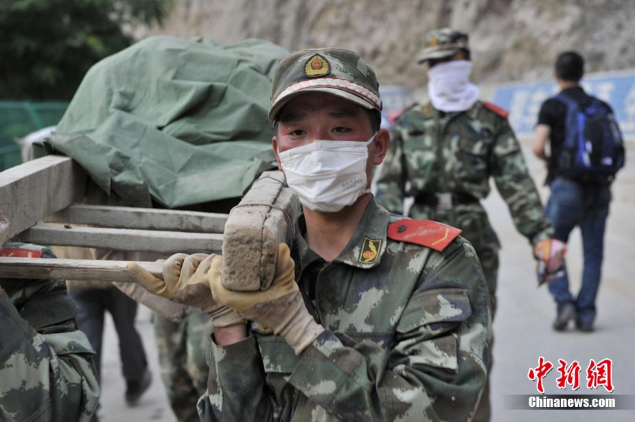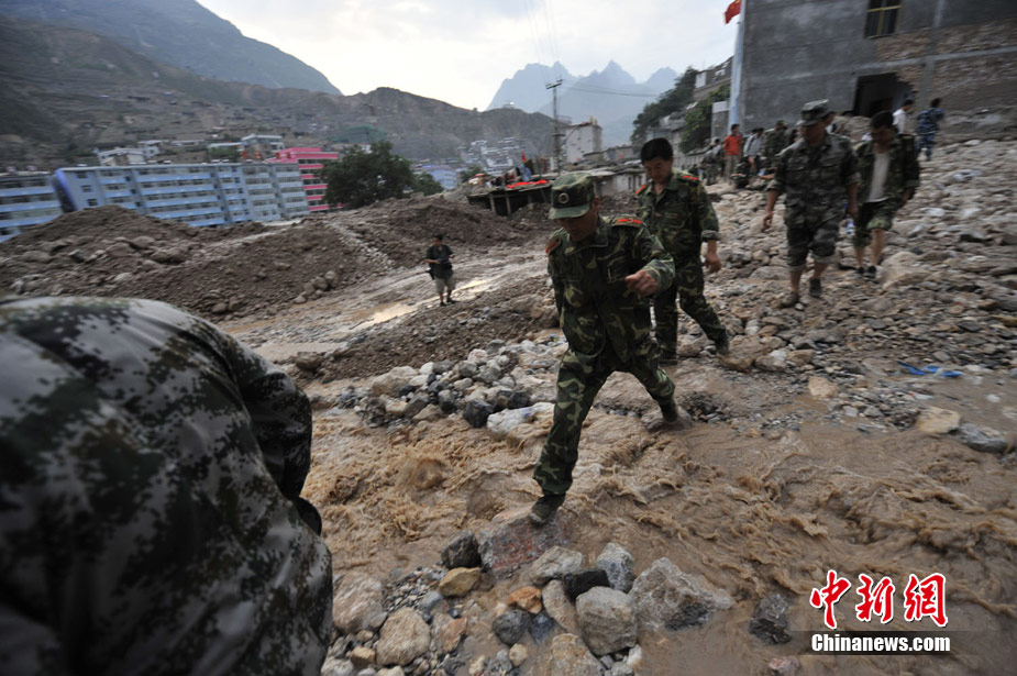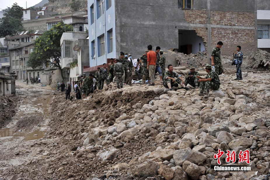 8月10日清晨,甘肅舟曲災區,武警官兵整裝待發。8日凌晨,甘肅省舟曲縣因強降雨引發滑坡泥石流,造成重大人員傷亡,電力、交通、通訊中斷。中新網記者 金碩攝
