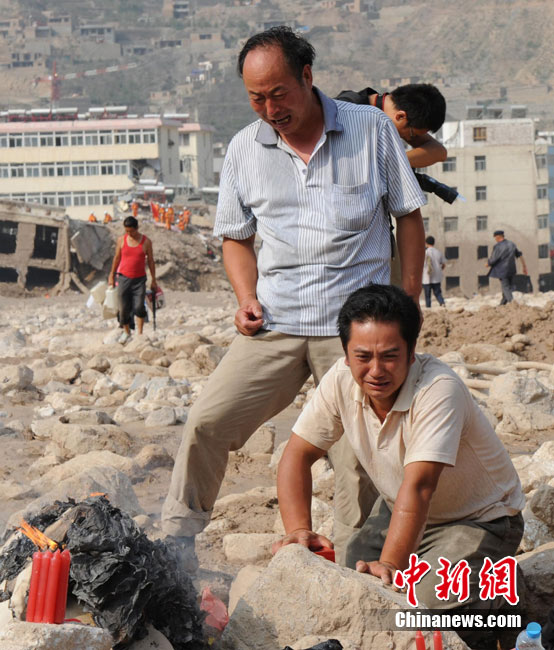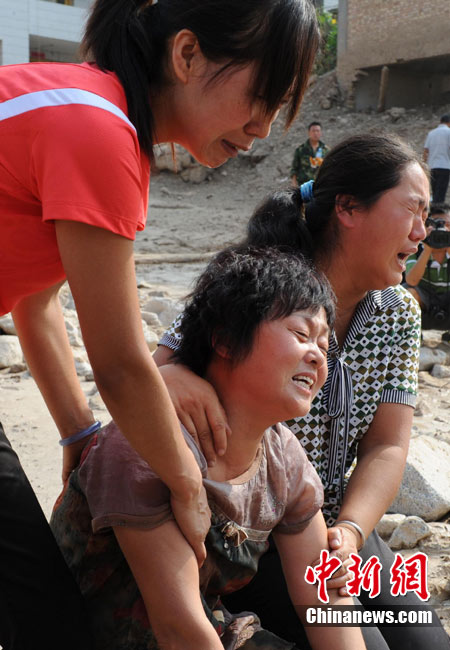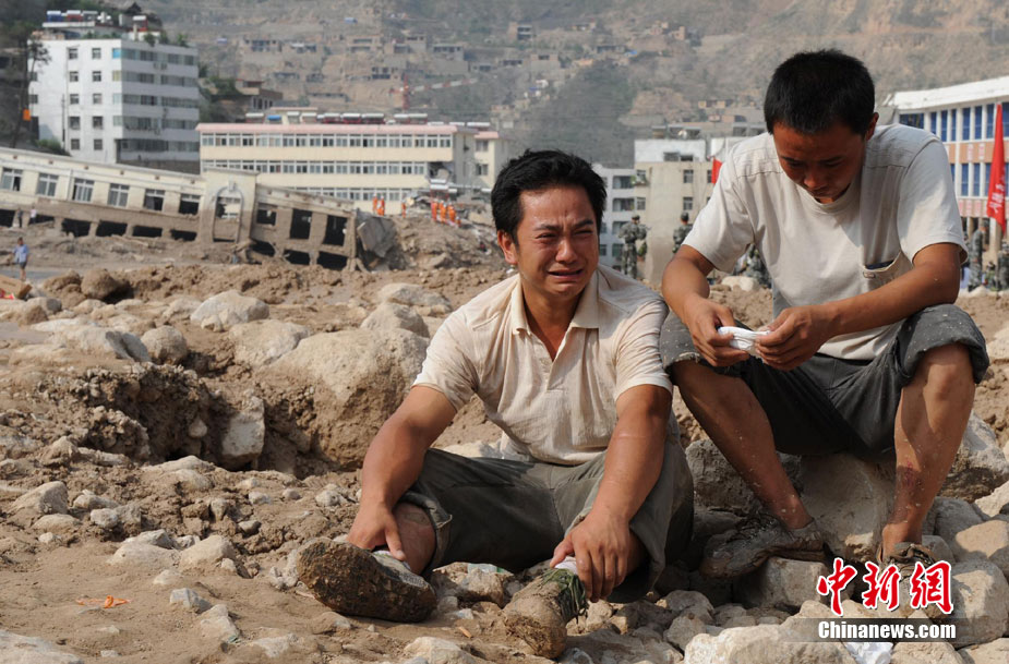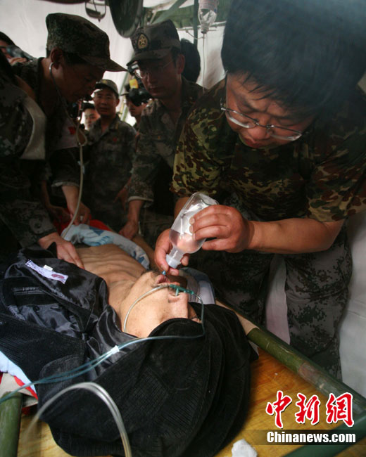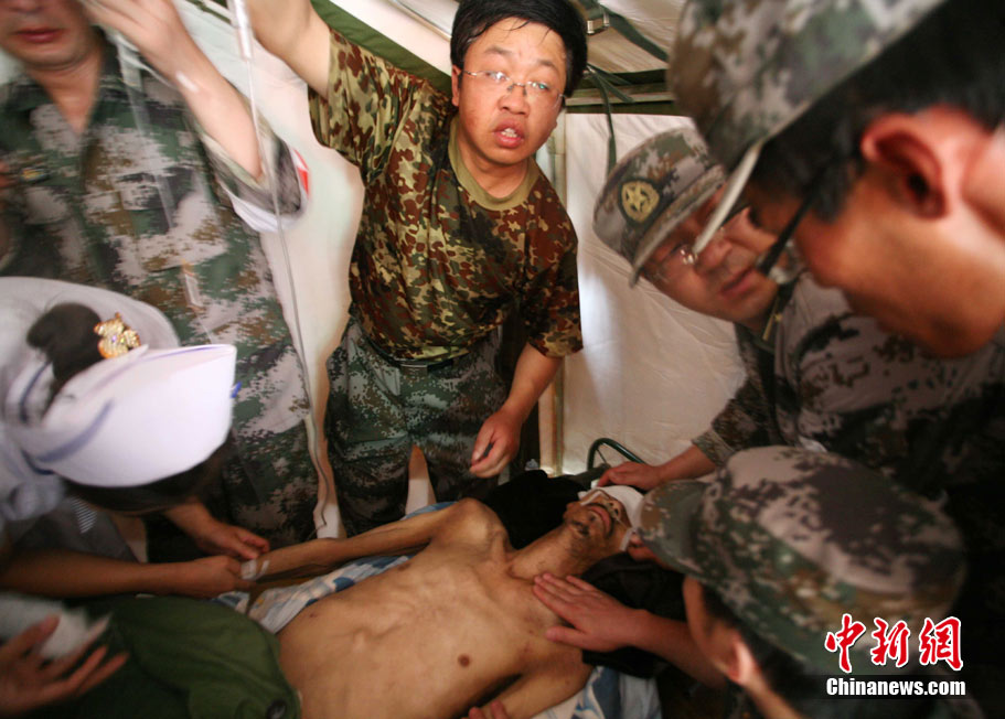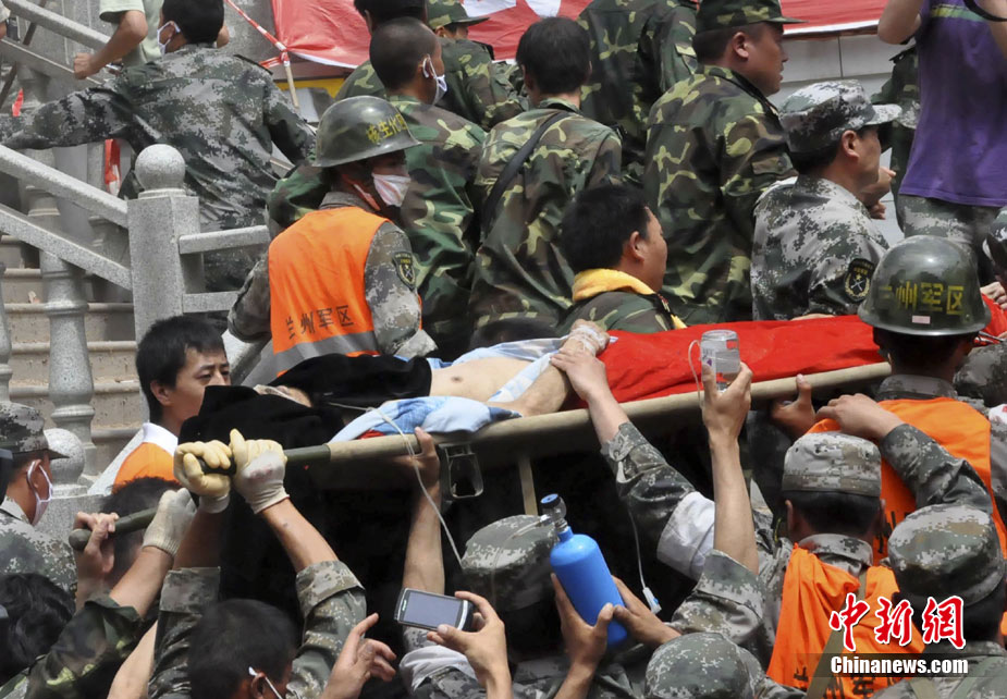 8月10日10時許,甘肅舟曲縣泥石流救援現場的移動大樓附近發現一名幸存者,經過四川廣元軍分區救援人員1小時30分的緊張營救,男子被成功救出。據悉,獲救者叫劉馬勝代,已被埋了近60個小時,今年52歲,是一名殘疾人。目前,有關方面正在緊急調集直升機將其轉移至蘭州救治。中新社發 劉忠俊 攝