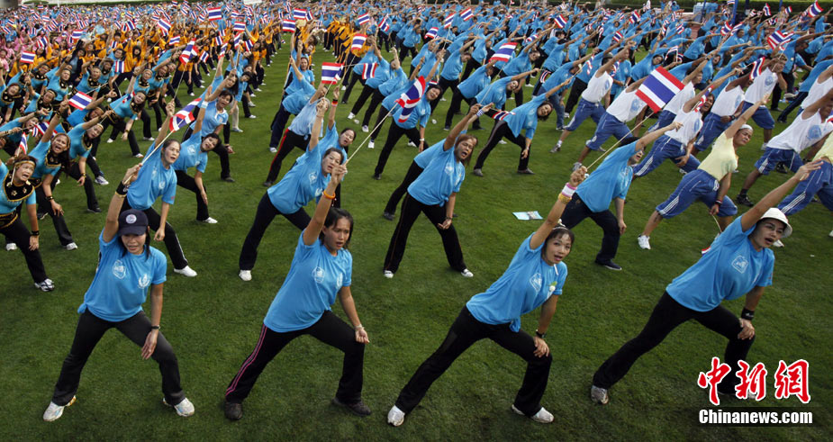 泰國民眾做操、放生海龜為王后慶生日