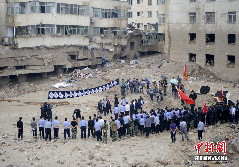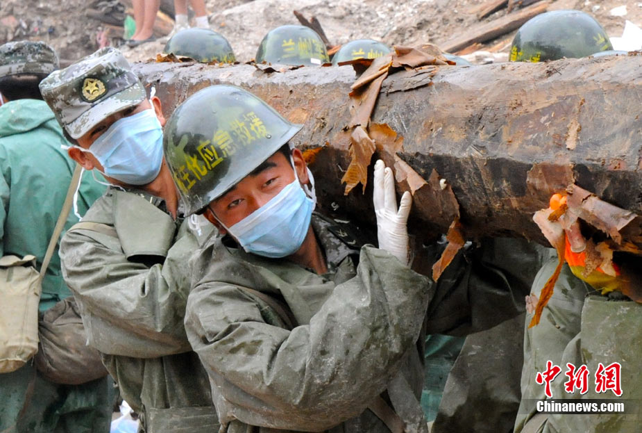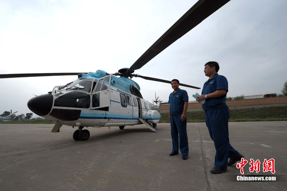 8月12日,甘肅舟曲、天水等地再次強降雨,兩河口至舟曲公路南峪大滑坡致交通完全中斷;中國空軍美洲豹機組在天水機場待命,隨時緊急運送人員暨救災物質。中新社發 陳文 攝