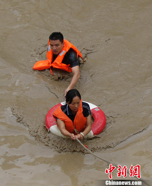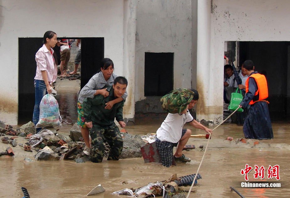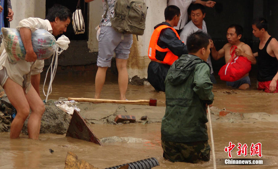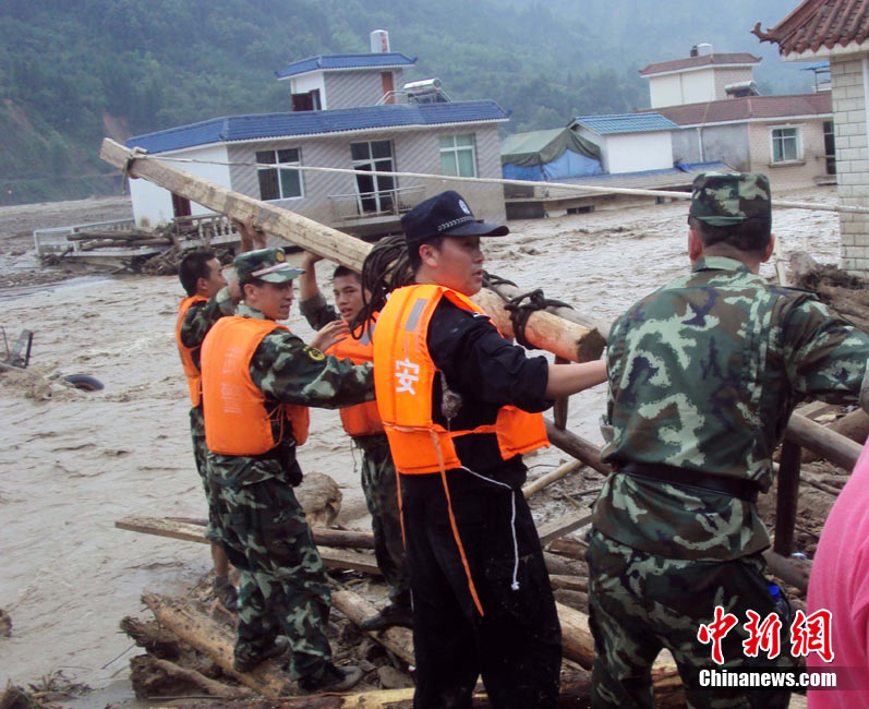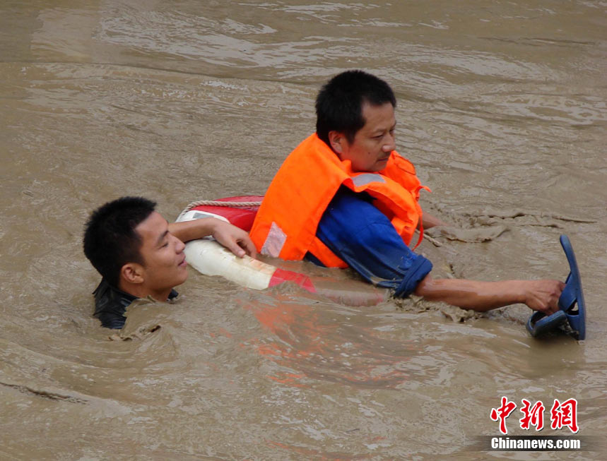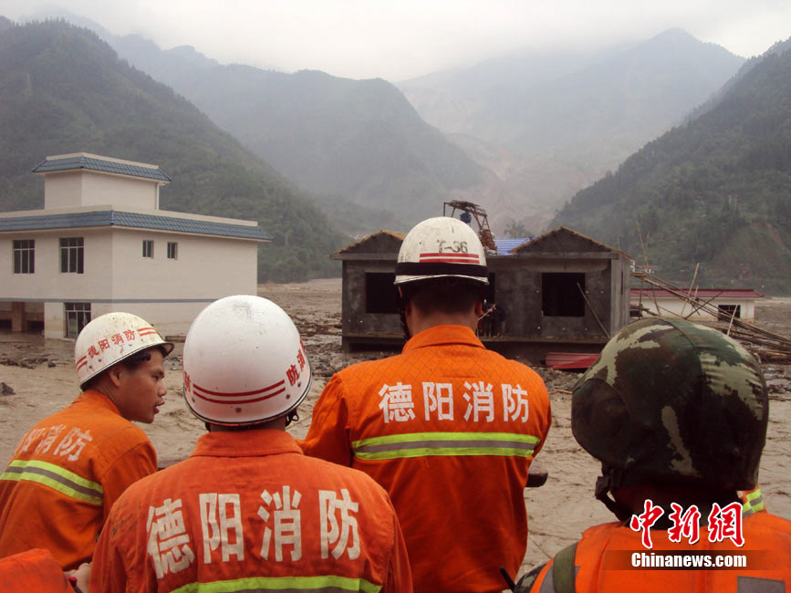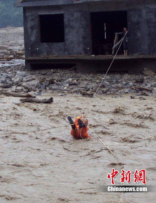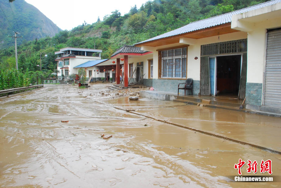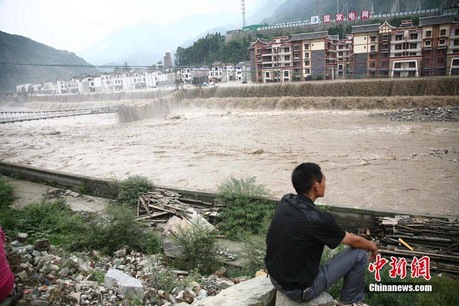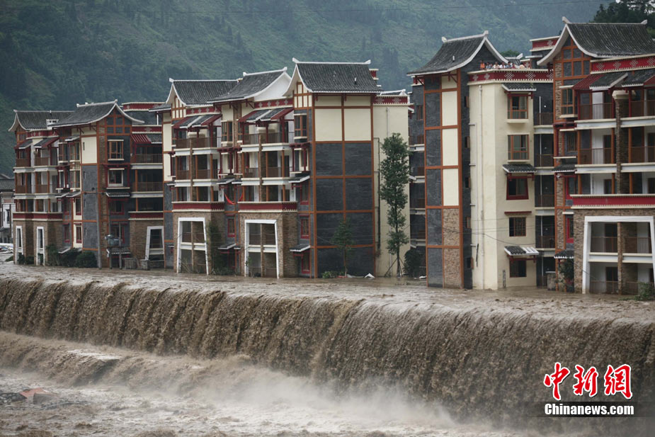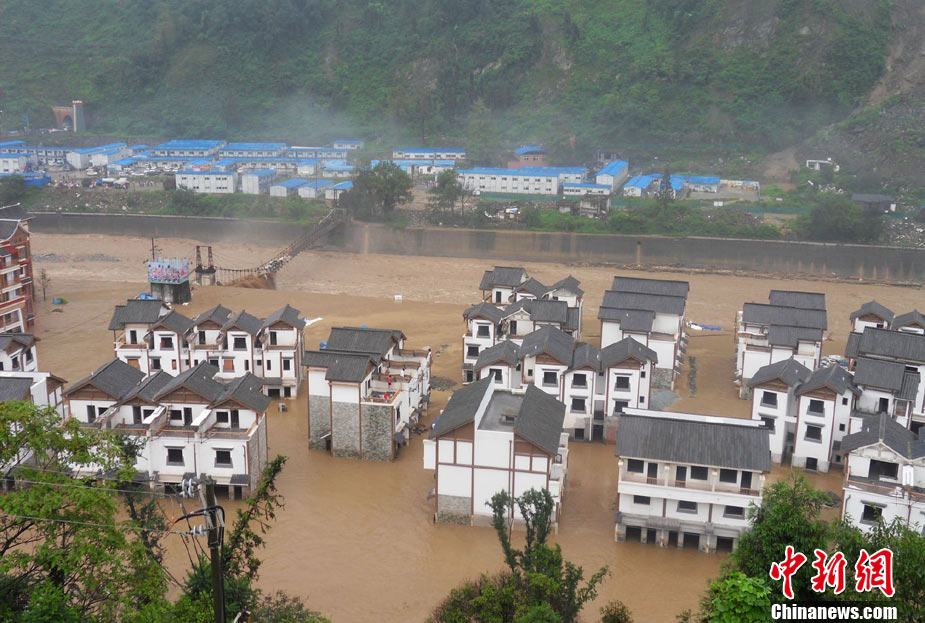 8月14日凌晨,汶川境內(nèi)映秀鎮(zhèn)、漩口鎮(zhèn)、銀杏鄉(xiāng)、三江鄉(xiāng)等鄉(xiāng)鎮(zhèn)發(fā)生多處泥石流災(zāi)害,目前已經(jīng)造成38人失蹤,映秀鎮(zhèn)災(zāi)后重建房屋被淹水中。圖為映秀鎮(zhèn)災(zāi)后重建房屋被淹水中。中新社記者 張浪 攝