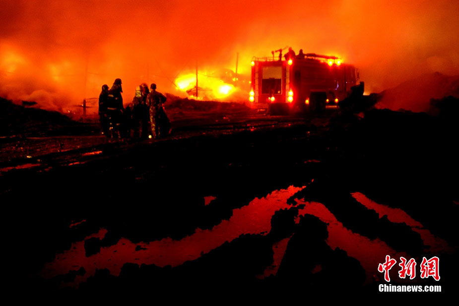 2010年8月16日9時40分左右,黑龍江省伊春市烏馬河區華利實業有限公司鞭炮廠發生持續爆炸。爆炸發生后,伊春市委、市政府緊急啟動爆炸事件、醫療救護應急處置預案,緊急調派公安、消防、醫療救護、武警部隊、駐軍部隊2000余人及時進行搶救,經過8個多小時的奮力鏖戰,因爆炸引起的火災已全部撲滅。截至17日零時,發生在當地烏馬河區的鞭炮廠爆炸已造成19人死亡,5人失蹤,住院傷者153人。準確原因正在進一步調查之中。圖為16日夜23時30分,武警消防部隊官兵不辭辛苦仍戰斗在火場一線清理殘火。陳剛 攝