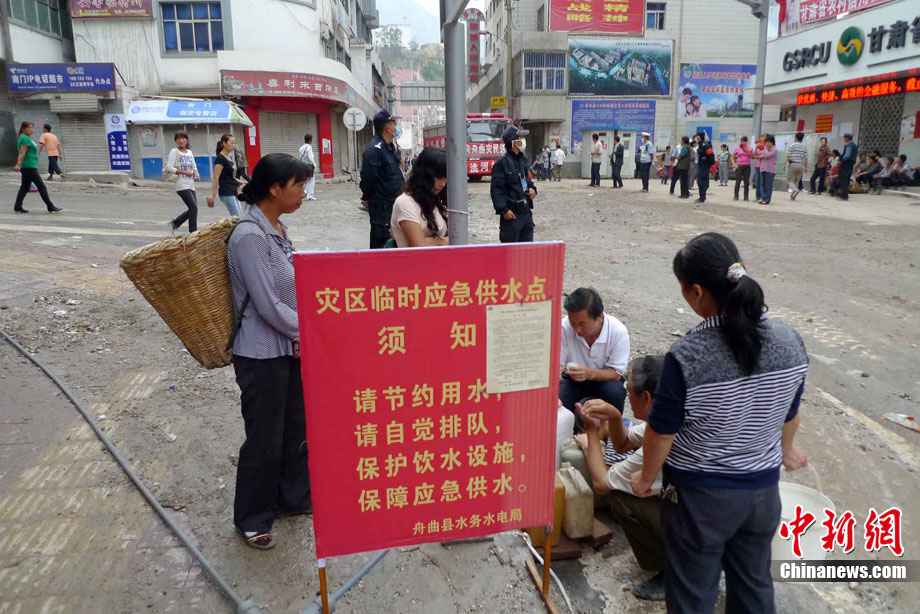 8月21日,舟曲特大山洪泥石流14天之后,舟曲縣城仍然為水所“困”:部分城市建設施仍然浸泡在水中,供排水系統嚴重受損。同時,雖然當地6萬人的基本飲水已經得到了解決,但生活用水仍存在較大缺口。中新社記者 侯志紅 攝