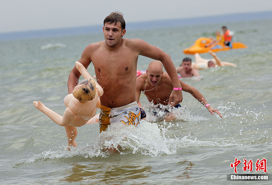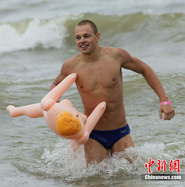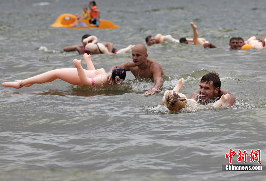 當地時間8月22日,一場別開聲面的搞笑游泳比賽在俄羅斯西伯利亞城市新西伯利亞舉行,數十名俄羅斯壯漢懷抱“充氣娃娃”躍入河中進行游泳比賽。不過,從比賽實況來看,很顯然這些參賽者并沒有把充氣娃娃當“伴侶”來對待,多半都當成游泳圈,使得氣氛既搞笑卻又帶點詭異。