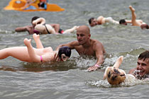 2010年度紐約華裔小姐競選,經過初選、培訓、才藝比賽等活動,于當地時間8月22日凌晨進行決賽,從入圍的13位佳麗中評出前三名和最佳才藝小姐、最上鏡小姐、最佳體態獎、最佳服裝獎、友誼小姐等獎項。最后,出生于吉林的12號佳麗張圣女當選冠軍。圖為眾佳麗祝賀張圣女當選冠軍。 中新社發 龔文謨 攝