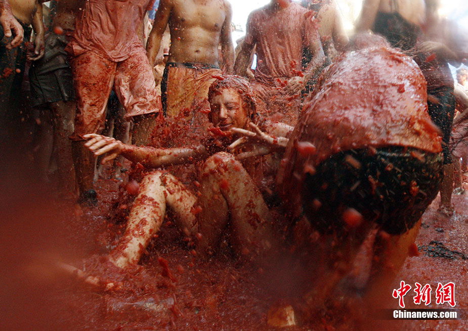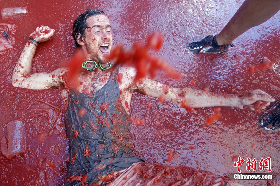 8月25日,西班牙東南部小鎮Bunol迎來傳統的西紅柿狂歡節。超過4.5萬人參加了此次活動,預計消耗了超過100噸西紅柿。這也是世界上最大規模的“番茄大戰”。