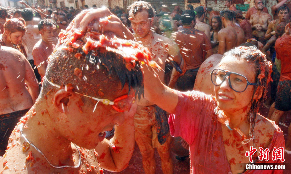 西班牙傳統“番茄大戰” 數萬人盡情狂歡