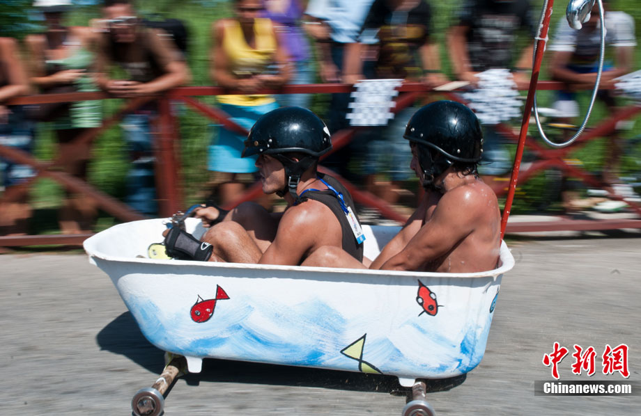 當地時間8月27日,古巴首都哈瓦那舉行了首屆無動力自制小車大賽。82名參賽選手駕駛著41輛自制小車參賽。