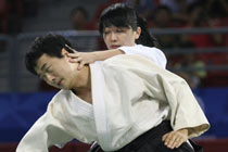 8月28日下午,首屆世界武搏運動會相撲男子中量級比賽在北京中國農業大學體育館結束,日本選手伊藤亮(中)獲得冠軍、日本選手吉田龍夫(左)獲得亞軍、烏克蘭選手葉夫根·克孜利亞丁獲得第三名。中新社記者 侯宇 攝