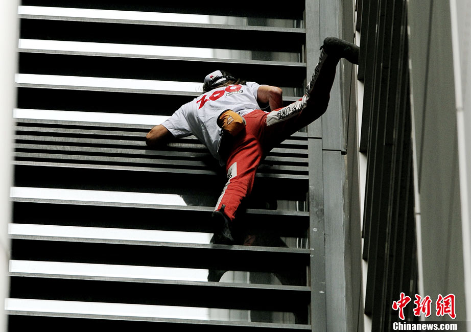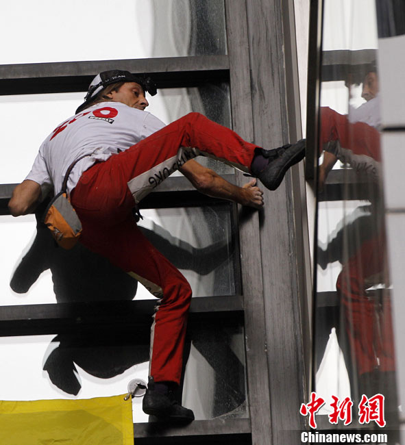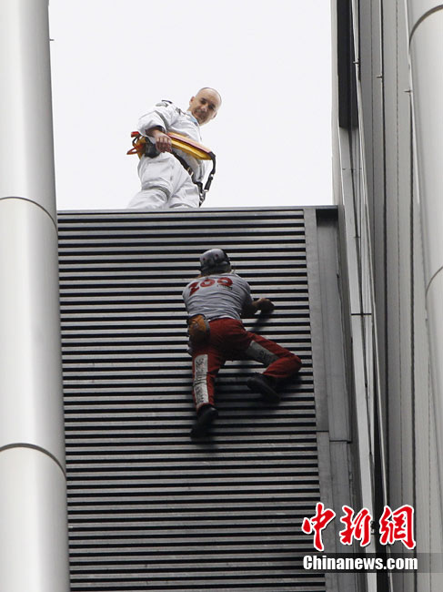 8月30日,悉尼,現年48歲的法國“蜘蛛俠”阿蘭·羅伯特攀爬悉尼最高住宅大樓57層高的Lumiere大樓。當羅伯特爬上大樓樓頂,便遭到警方逮捕。據悉,到目前為止,羅伯特已經成功地在世界各地爬上了共計70座高層建筑,包括紐約帝國大廈、芝加哥西爾斯大廈(Sears Tower)及馬來西亞吉隆坡的雙子塔等。