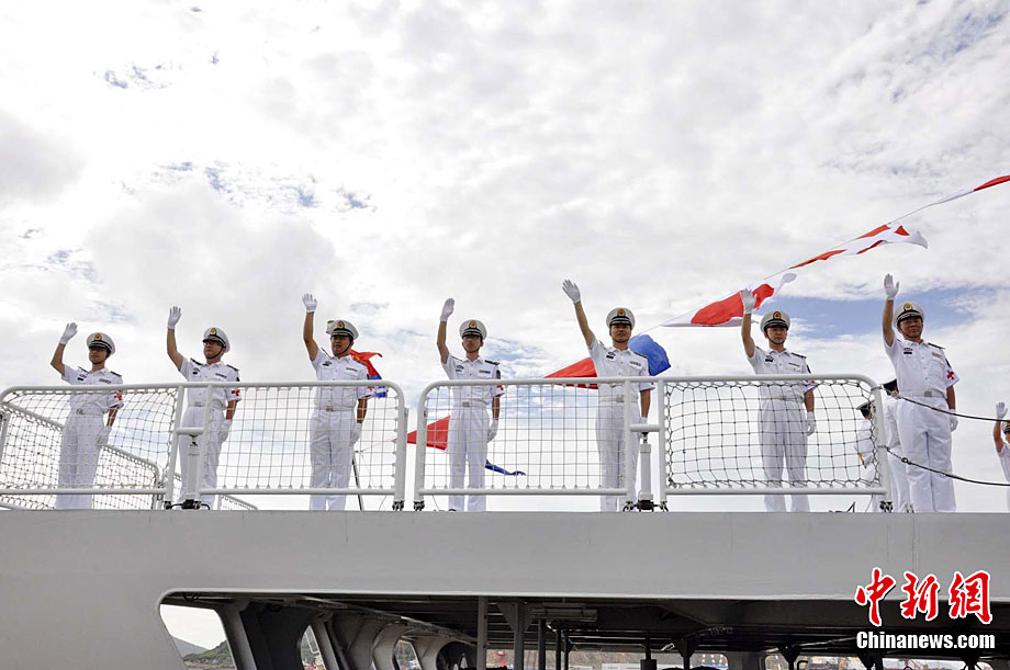 8月31日,經中央軍委批準,由中國自行研制的世界首艘萬噸級“和平方舟”號醫院船從舟山某軍港啟航,前往亞丁灣海域及吉布提、肯尼亞、坦桑尼亞、塞舌爾、孟加拉五國執行“和諧使命——2010”任務。這是中國“和平方舟”號醫院船首次赴國外執行巡診及醫療服務任務。圖片來源:cnsphoto 胡善敏 攝