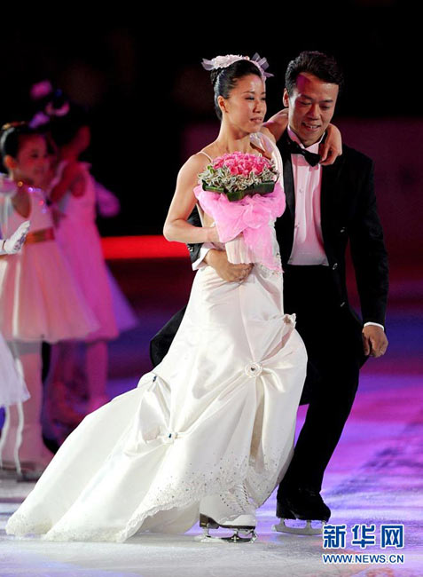 9月4日,申雪/趙宏博在首都體育館舉辦冰上婚典,并邀請普魯申科、亞古丁、約翰尼·威爾、淺田真央、羅切特等世界花滑巨星,聯袂世界著名編舞大師瑞內·羅卡、歌星張靚穎、小提琴家呂思清等,為中國觀眾奉獻上一場賞心悅目、浪漫唯美的視聽盛宴。