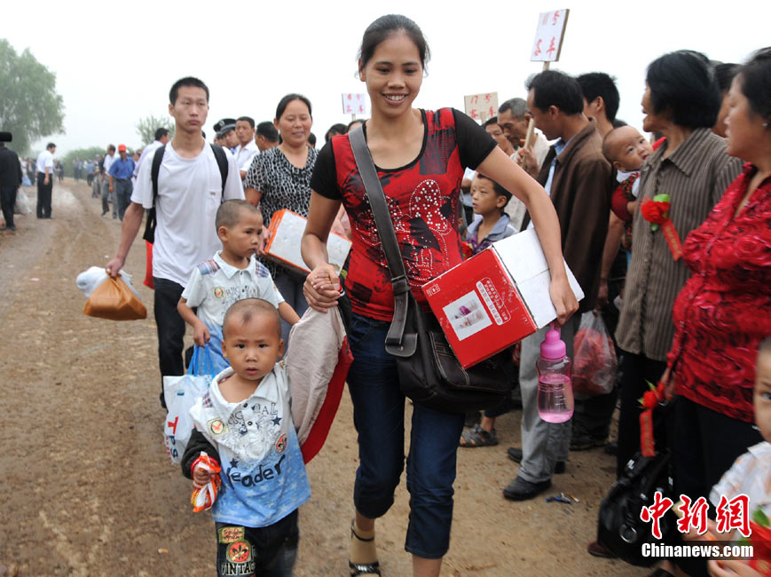 9月4日,河南省淅川縣盛灣鎮河扒村363戶1432名移民別離故土,奔赴新的家園。至此,河南省南水北調丹江口庫區首批移民集中搬遷安置工作圓滿完成。6月17日至9月4日,河南省淅川縣南水北調丹江口庫區首批60886名移民在78天時間全部搬遷完畢,整個過程無一例安全責任事故,無一例移民人身傷亡事故,實現了平安、有序、和諧搬遷。中新社發 淅川宣 攝