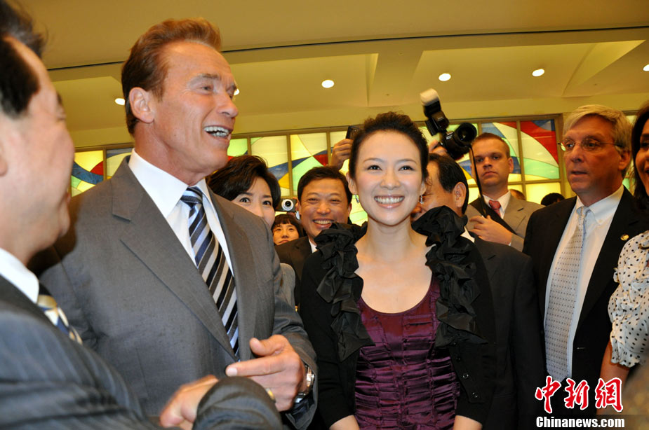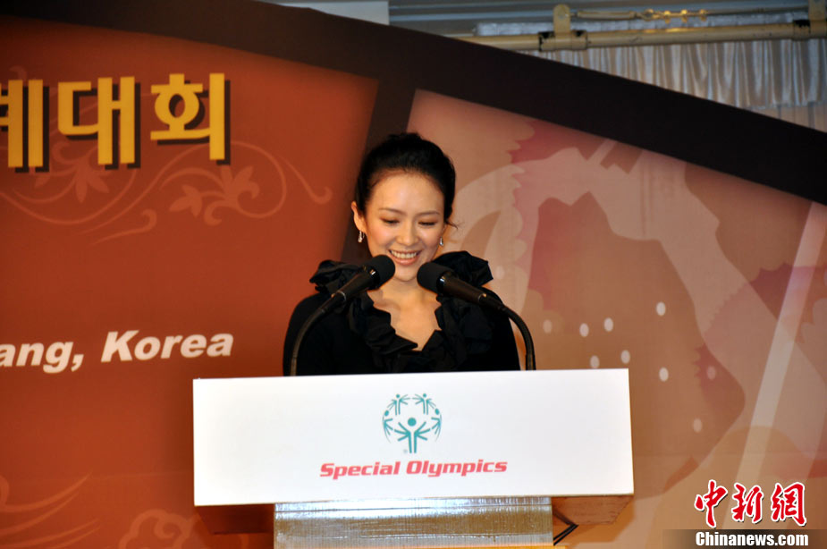 章子怡首爾與施瓦辛格同為智障兒童加油