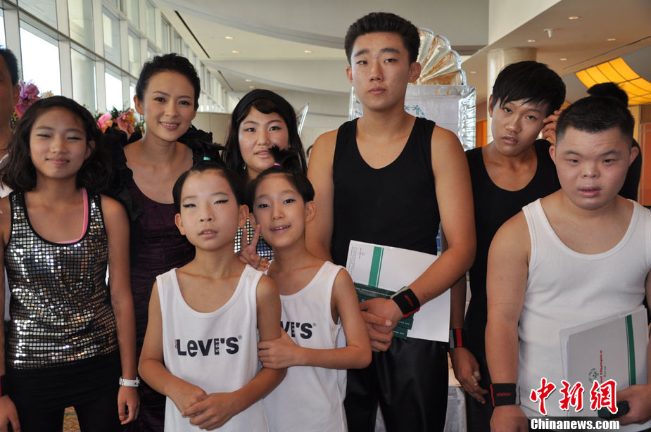 當地時間9月15日上午,國際特奧會在首爾舉辦“2013年特殊奧林匹克冬季運動會”新聞發布會和簽字儀式,并宣布韓國平昌將成為本屆冬季特奧會的主辦地。特奧全球形象大使、國際影星章子怡出席發布會,身體力行關愛智障人士,為他們的表演和精神鼓勁加油。美國加州州長、前動作巨星阿諾德•施瓦辛格出席該活動,并與章子怡等共同見證特奧的啟動。圖為章子怡為智障兒童加油打氣。