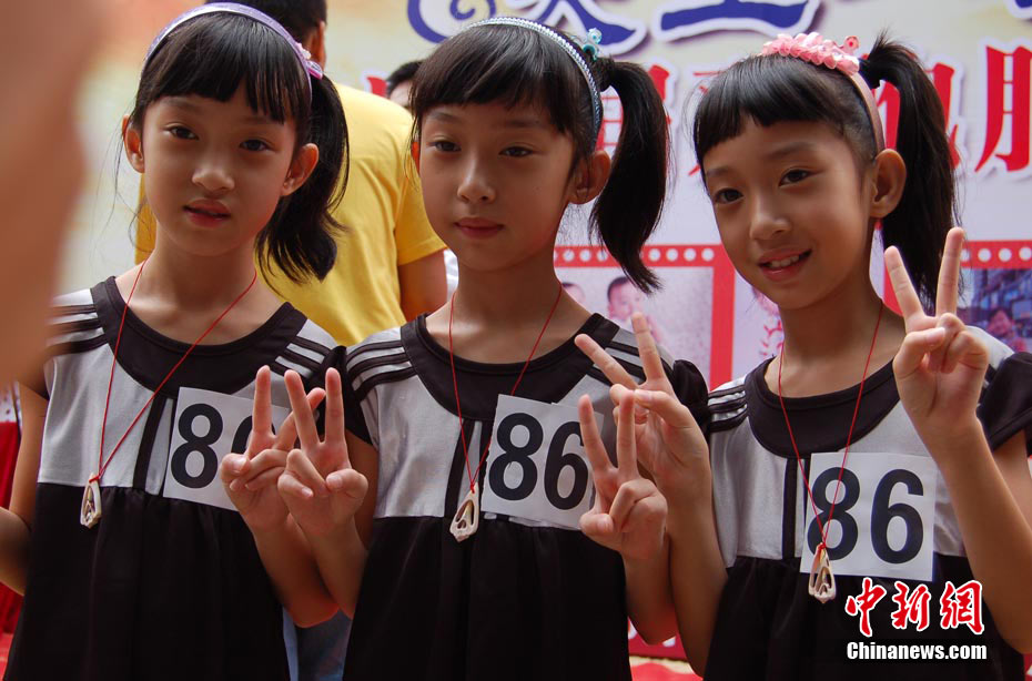 10月1日,國慶長假第一日,70多對雙胞胎、三胞胎歡聚廣西南寧市人民公園,參加“南寧首屆雙胞胎歡樂節”,比拼相似度與默契程度。參加活動的雙胞胎有長得酷似李宇春、周迅、大小S等明星,引來眾多好奇目光。中新社記者 劉萬強 攝