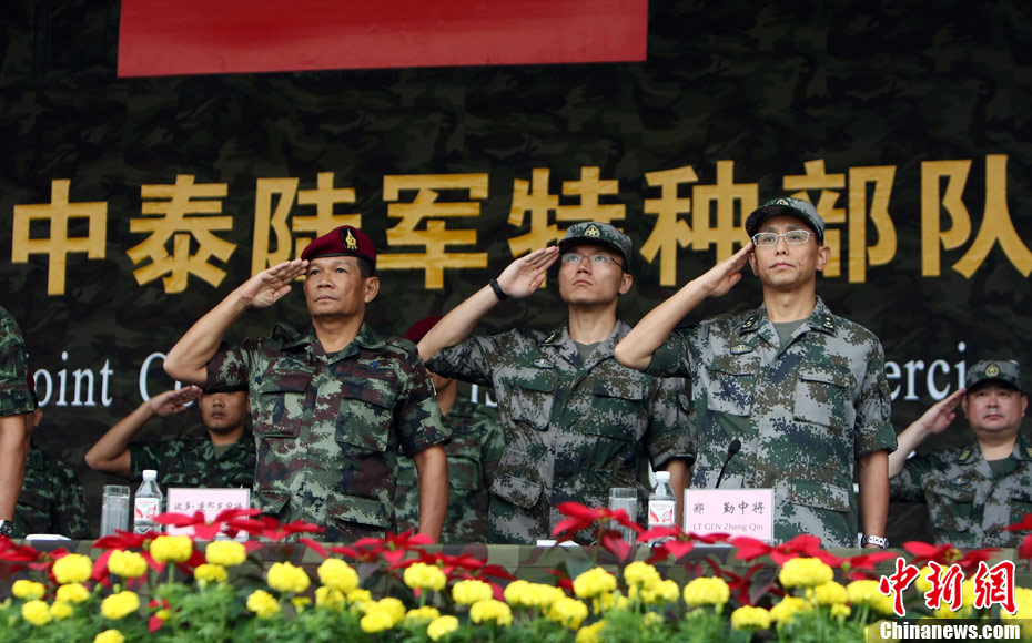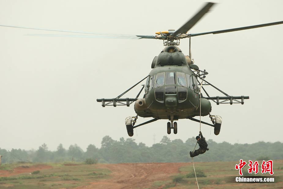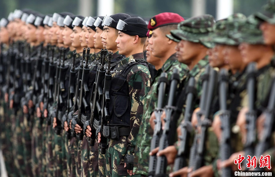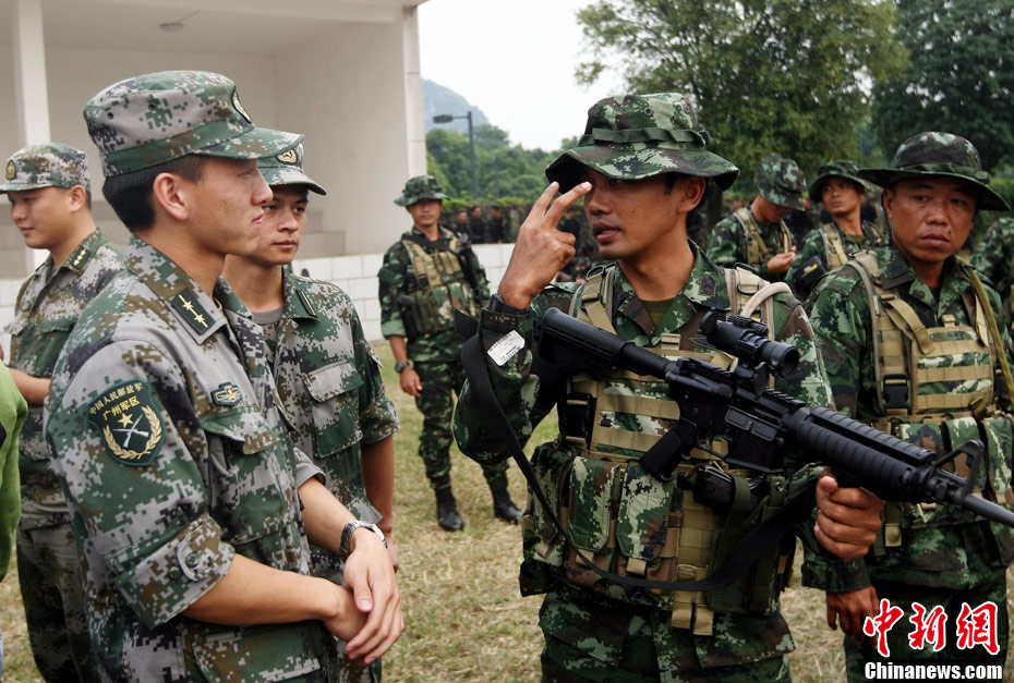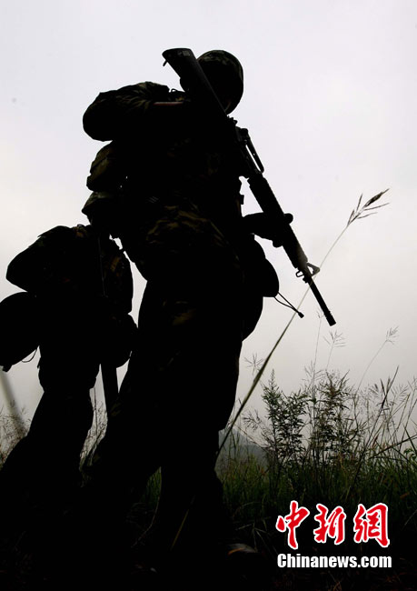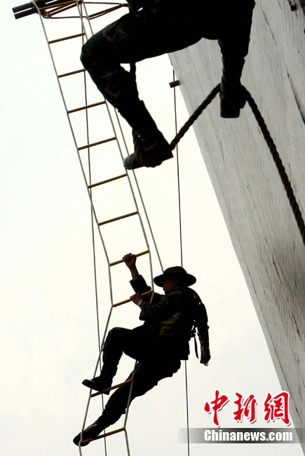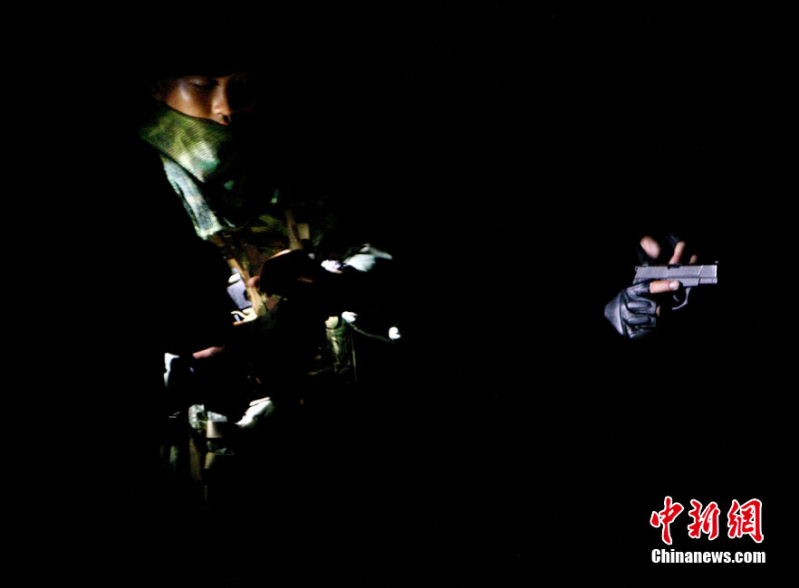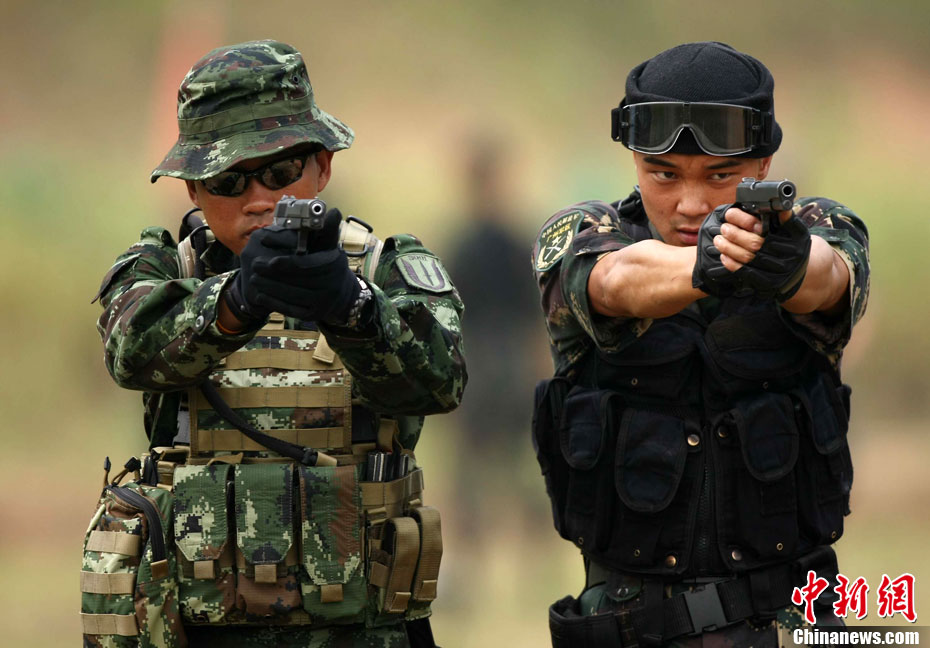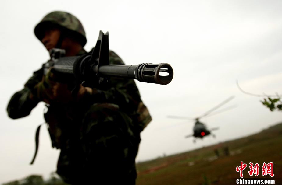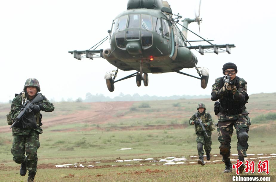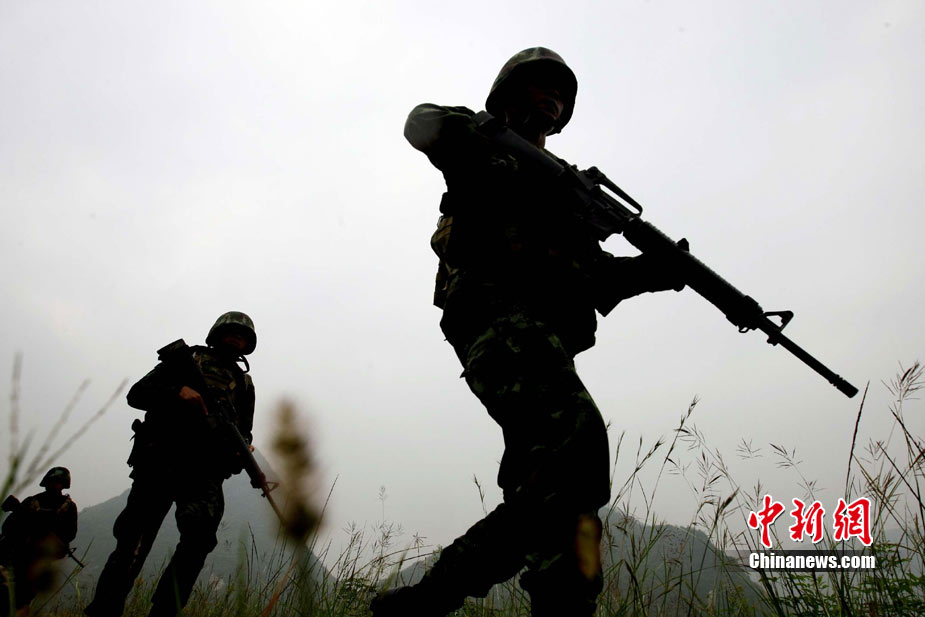 10月8日,中國、泰國兩軍特種部隊“突擊—2010”反恐聯合訓練在廣西桂林拉開帷幕,這是兩國之間舉行的第三次陸軍聯合訓練。分析人士指出,這次聯訓將進一步鞏固兩軍關系,提高聯合反恐作戰能力,利于維護地區和平穩定。此次聯訓為期15天,這是中泰兩國陸軍首次就城市反恐課題開展聯訓。圖為中國參訓部隊在開幕式上表演房屋突擊。中新社記者 杜洋 攝
