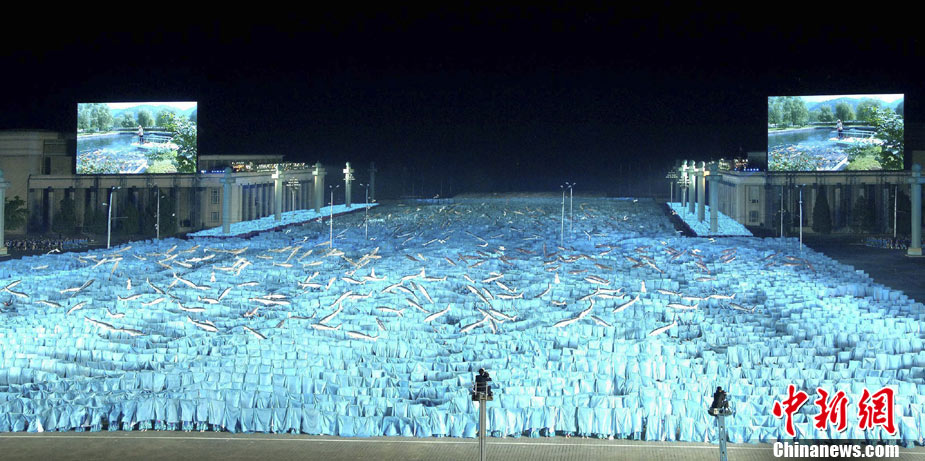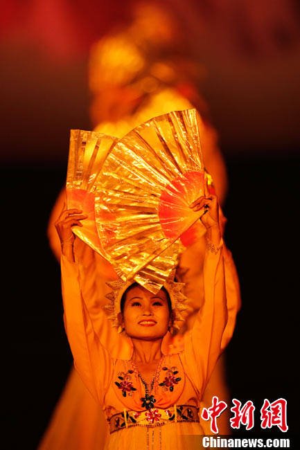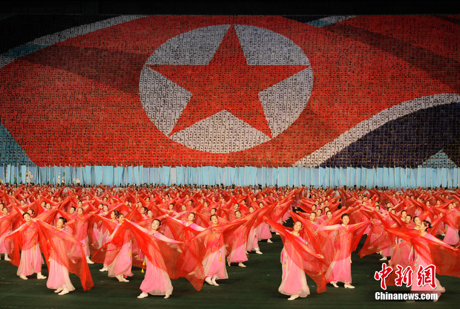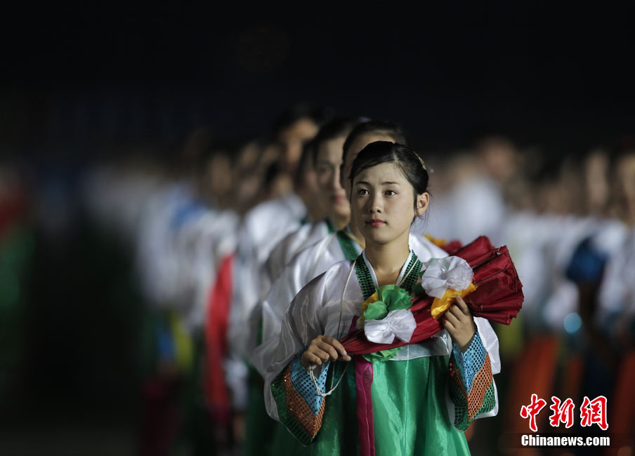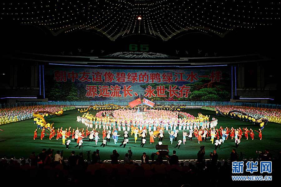 10月10日晚,朝鮮首都平壤舉行慶祝勞動黨建黨65周年盛大聯歡晚會。圖為晚會現場。