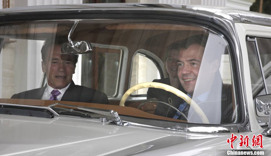 俄總統(tǒng)與施瓦辛格會面 為“硬漢”當司機