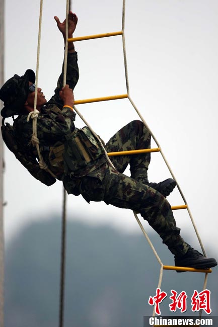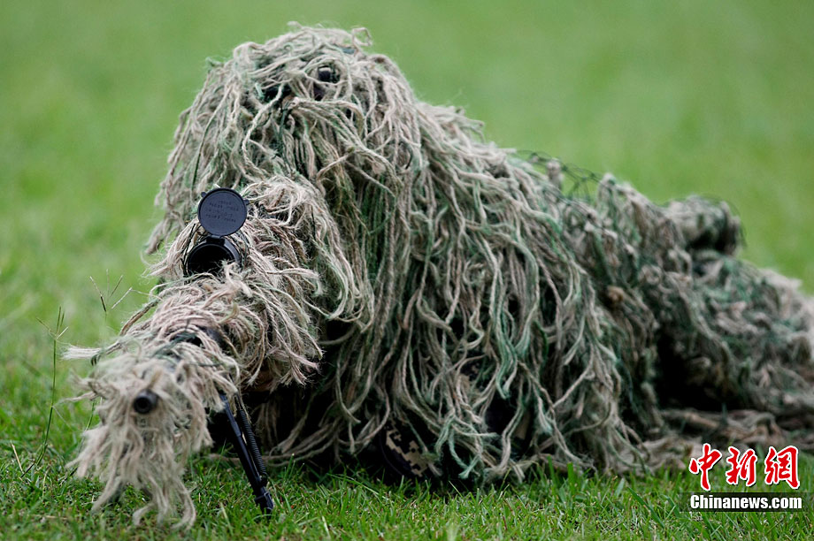 “突擊-2010”中泰陸軍特種部隊反恐聯合訓練10月6日至20日在廣西壯族自治區桂林進行。圖為身著偽裝服的狙擊手。中新社記者 杜洋 攝