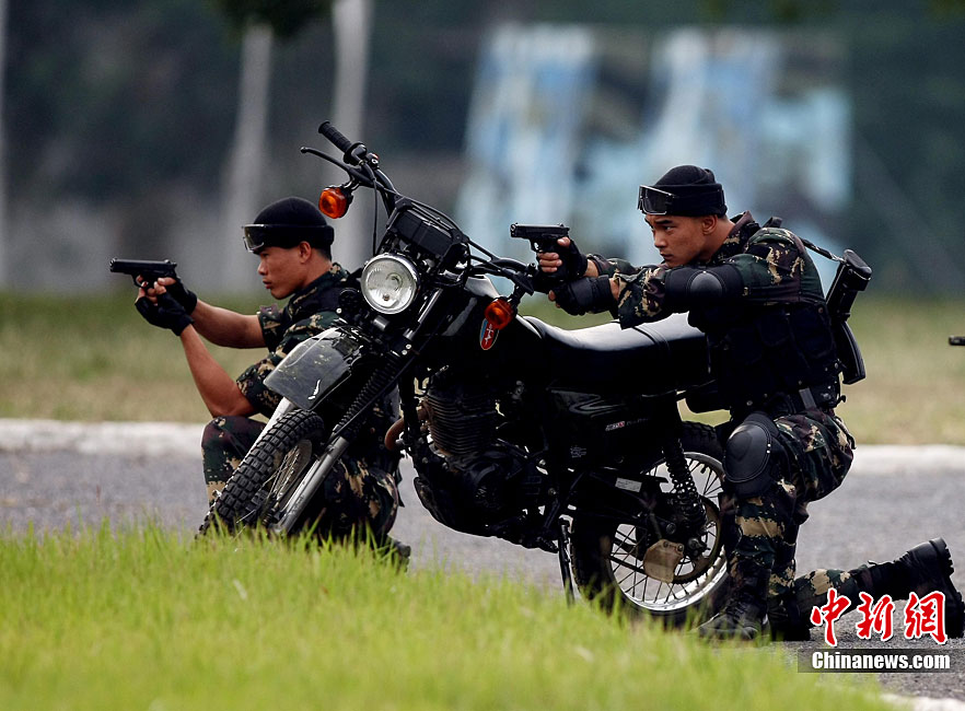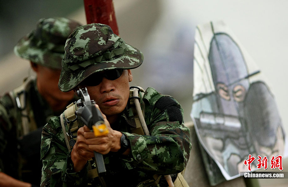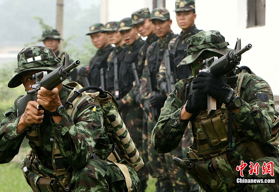 10月6日至20日,代號“突擊—2010”的中泰陸軍特種部隊聯合反恐訓練在廣西桂林舉行。參加演練的,分別是被譽為“南國利劍”的廣州軍區某特種大隊和被譽為“叢林猛虎”的泰國陸軍特戰三團派出的120名官兵。在兩周時間內,訓練內容涵蓋射擊、攀登、反制戰術等8大項、20多個小項的課目。中新社記者 杜洋 攝