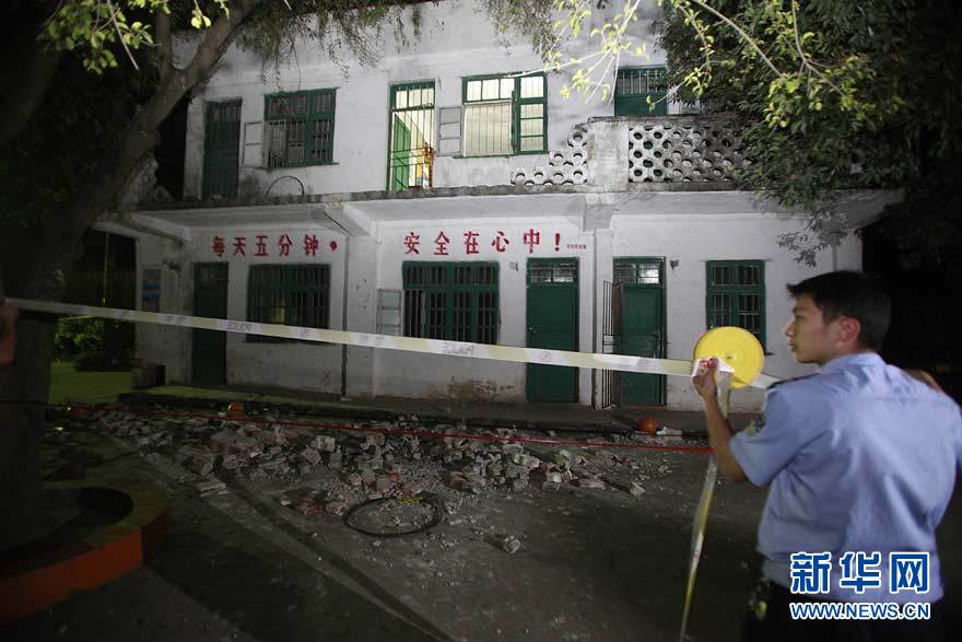 10月21日,警方在發生護欄坍塌事故的教學樓外拉起警戒線。當日下午4時40分左右,廣西柳江縣洛滿鎮洛滿中心小學一棟兩層教學樓二樓走廊護欄發生坍塌事故。截至21日晚9時,共有27名學生墜落不同程度受傷,4人傷勢較嚴重。