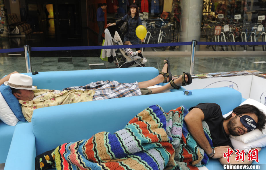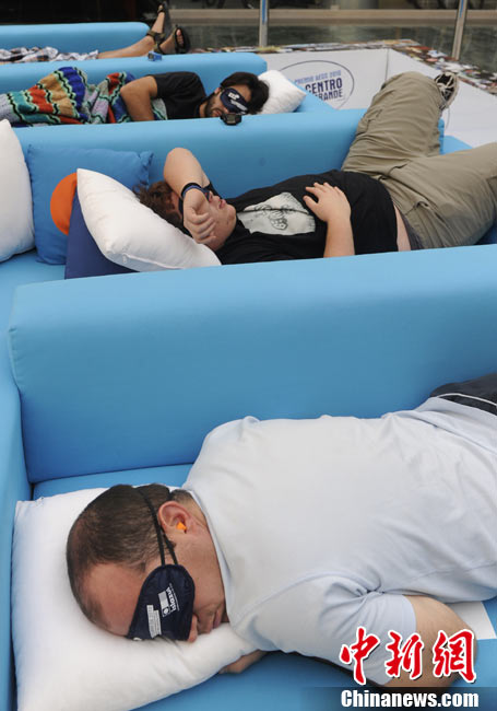 10月21日,在西班牙馬德里的一家商場內,舉行了一場奇特的“打盹大賽”。眾多選手展開了睡覺的比拼,并且有專門的裁判來監督選手是否“作弊”。