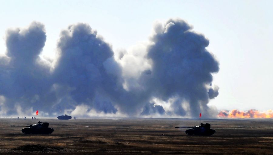 與此同時,某師偵察分隊乘坐沖鋒舟對渡口兩岸展開嚴(yán)密搜索警戒,隱蔽于河岸灘頭的防空兵群迅即構(gòu)建防空天網(wǎng)。河面上,沖鋒舟如蛟龍般來回穿梭,不斷施放防“敵”空中偵察的煙幕彈。很快,江面煙霧滾滾,將緊張的架橋場面遮掩得嚴(yán)嚴(yán)實實。劉永華/朱映濤 圖片來源:中國軍網(wǎng)