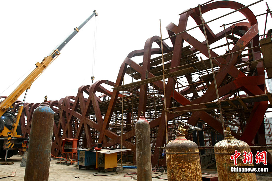近日,北京通惠河南岸的慶豐公園東側(cè),一座面積約300平方米、三層樓高的建筑,以其酷似國(guó)家體育場(chǎng)“鳥巢”的造型吸引了不少人的目光。據(jù)悉,該建筑是正在建設(shè)中的通惠時(shí)尚國(guó)際廣場(chǎng)的配套建筑。10月20日上午,國(guó)家體育場(chǎng)的工作人員已到現(xiàn)場(chǎng)取證,將研判是否涉嫌侵權(quán)。中新社記者 富田 攝