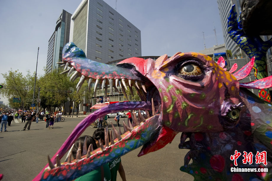 當?shù)貢r間10月23日,墨西哥首都墨西哥城,人們舉行名為“Alebrijes”的怪獸大游行。Alebrijes是典型的墨西哥瓦哈卡州手工藝品。佩德羅·利納雷斯在1936年創(chuàng)作出名為Alebrije的工藝品,它以紙漿制成,最大的特點就是它是不存在或人們想象的動物。