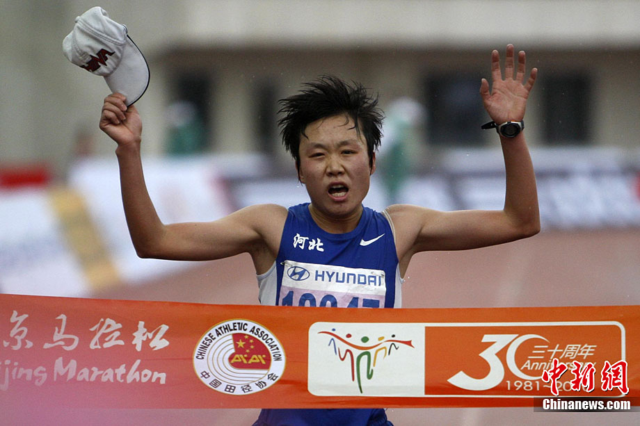10月24日8時,2010年北京馬拉松正式鳴槍,所有參賽運動員在淅淅瀝瀝的小雨中從天安門廣場出發。今年的北京馬拉松正式與國際接軌,與往年不同的特點是北京馬拉松賽、全國馬拉松錦標賽以及首都高校馬拉松賽“三賽合一”,并采取一次發槍制,所有組別的選手都同時出發。中新社記者 富田 攝