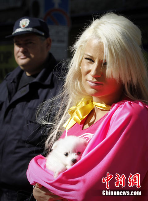 保加利亞金發女郎街頭集會 大秀高挑身材