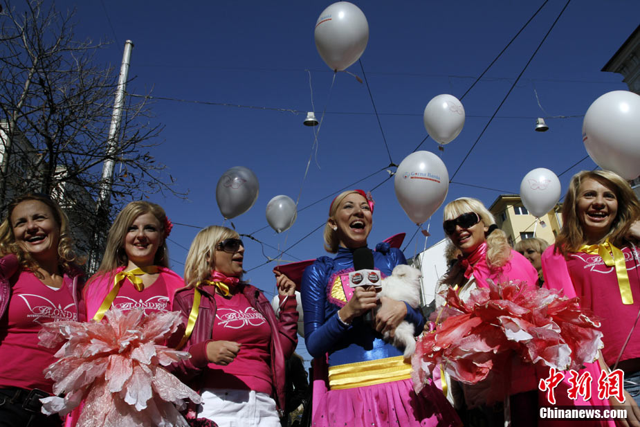 近日,在保加利亞首都索非亞舉行了金發女郎大游行,眾多美女在街頭大秀嫵媚身材。