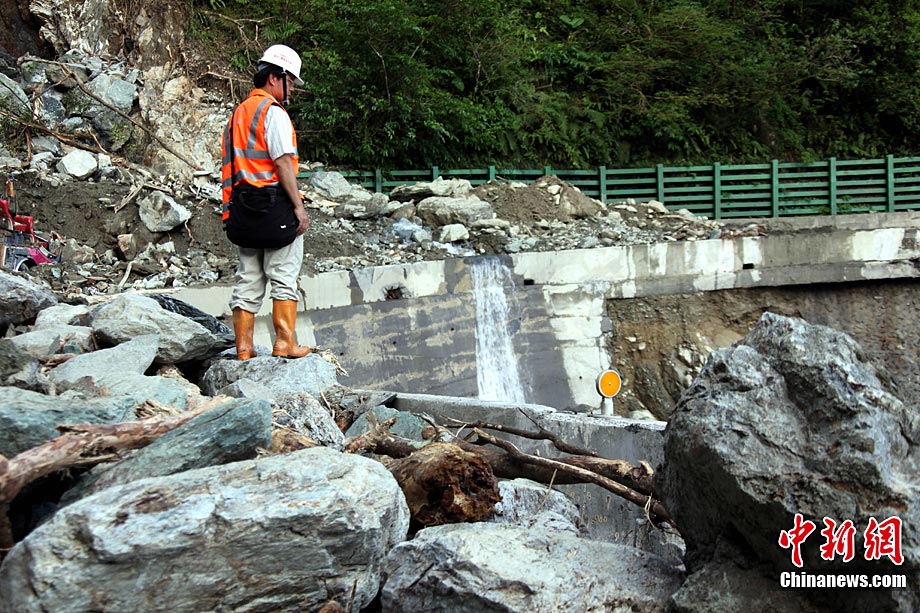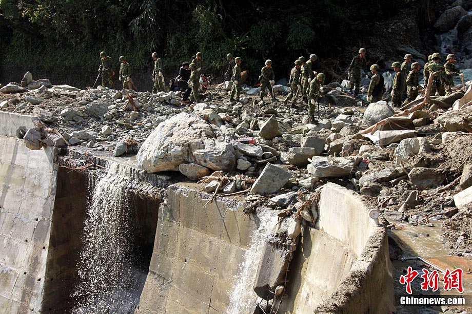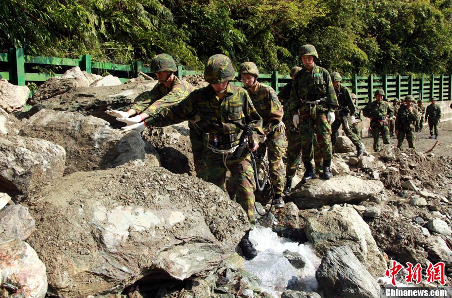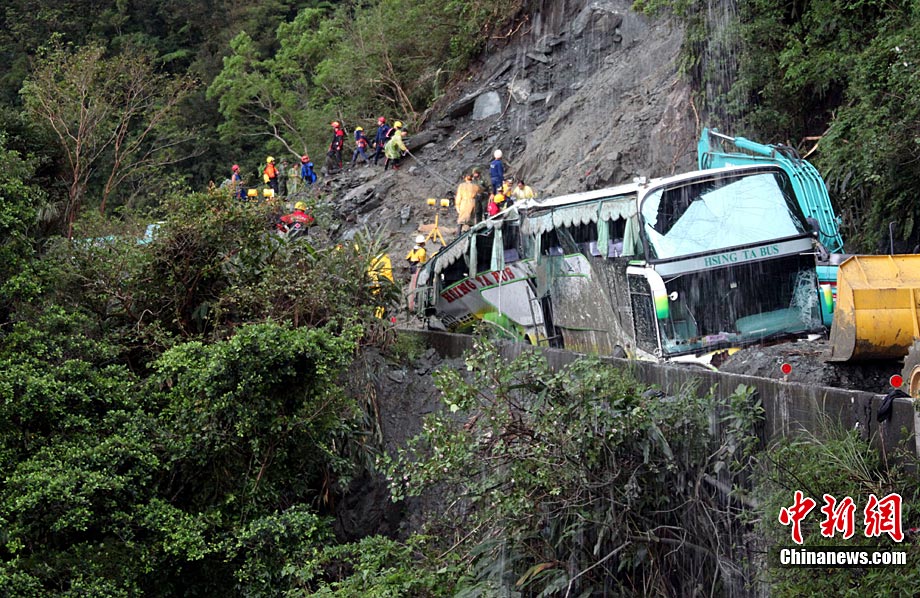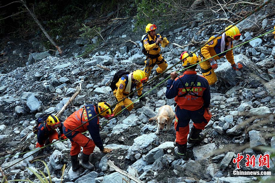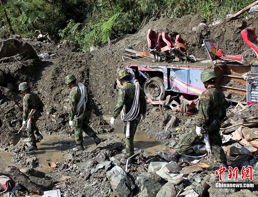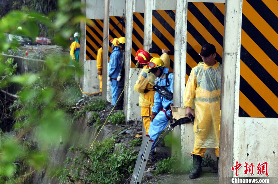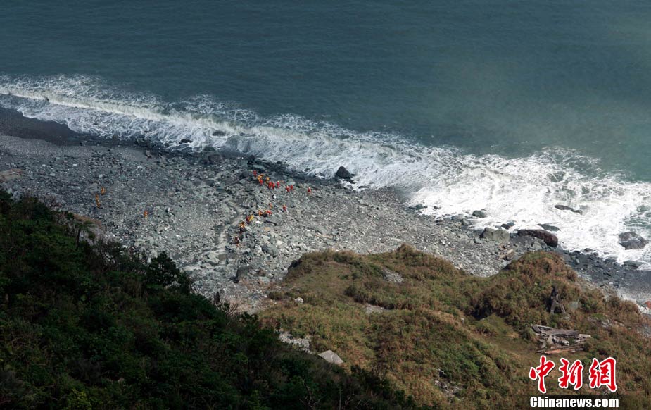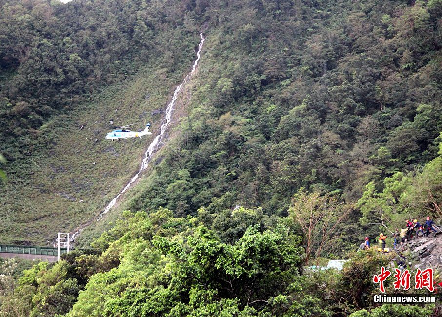 臺(tái)灣蘇花公路塌方事故已逾5天,事故發(fā)生的宜蘭縣一帶26日持續(xù)大雨。然而對(duì)失蹤者(包括18名大陸游客和2名大陸領(lǐng)隊(duì))的海陸空三路搜索仍在持續(xù)。現(xiàn)場(chǎng)搜索進(jìn)展艱難,其間并發(fā)生一名搜救隊(duì)員被砸傷的情況。 中新社記者 王健 攝