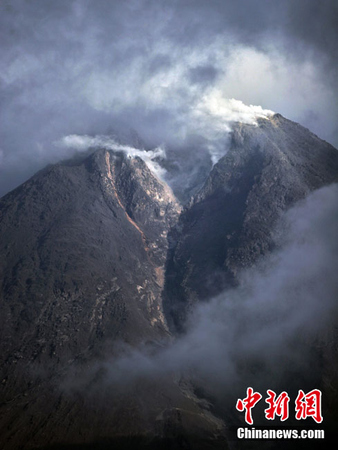 印尼默拉皮火山28日再次爆發,噴出大量火山灰和灼熱煙云。目前,火山附近5萬多名居民已經轉移至臨時居住所,有32人因火山噴發喪命。