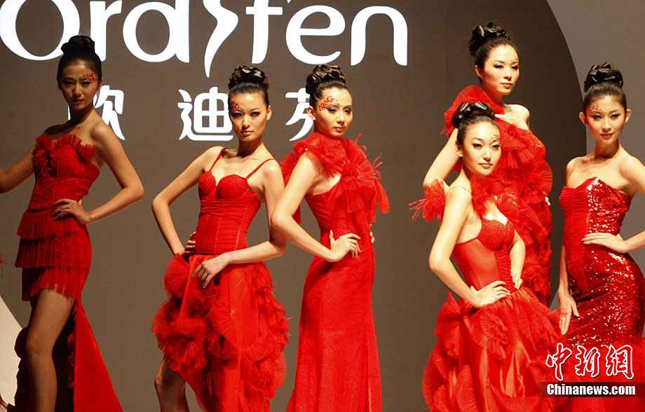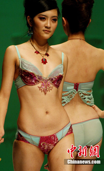 10月28日, 2010“歐迪芬杯”中國內(nèi)衣設(shè)計(jì)大賽在北京舉行,20位沖過初賽、復(fù)賽層層挑戰(zhàn)的選手們,聚集在中國內(nèi)衣設(shè)計(jì)的最高賽場,用創(chuàng)意與靈感展開激烈角逐。圖為模特展示“明門之秀”主題內(nèi)衣設(shè)計(jì)作品。中新社記者 錢興強(qiáng) 攝