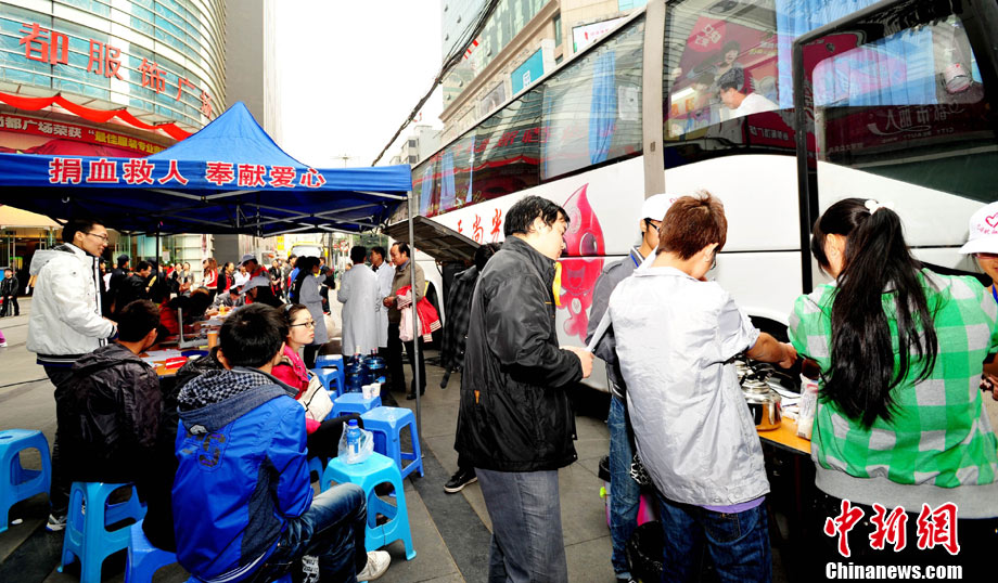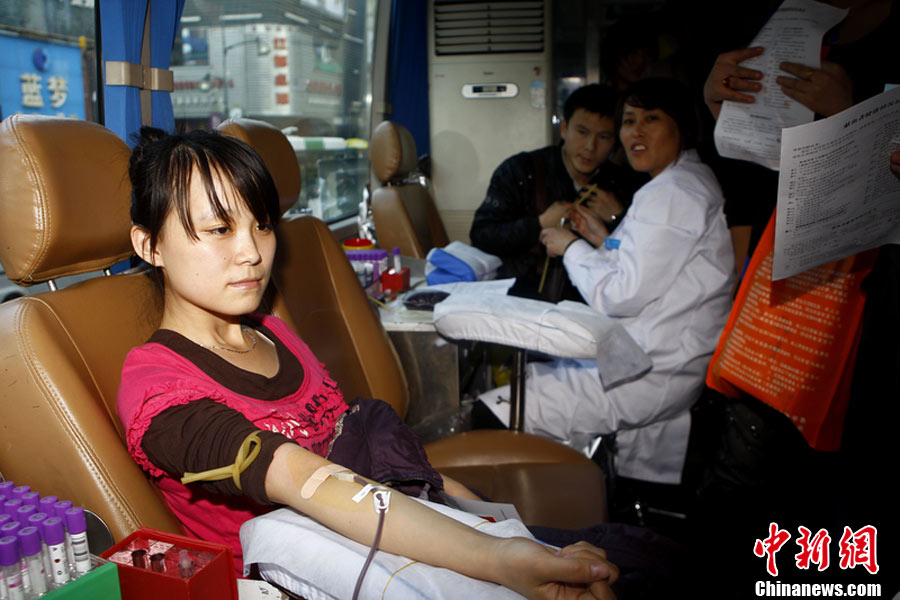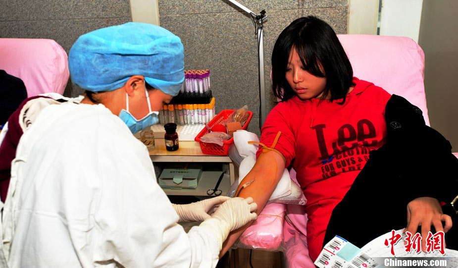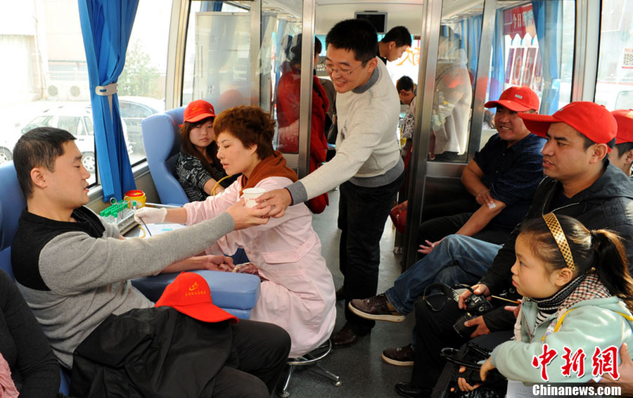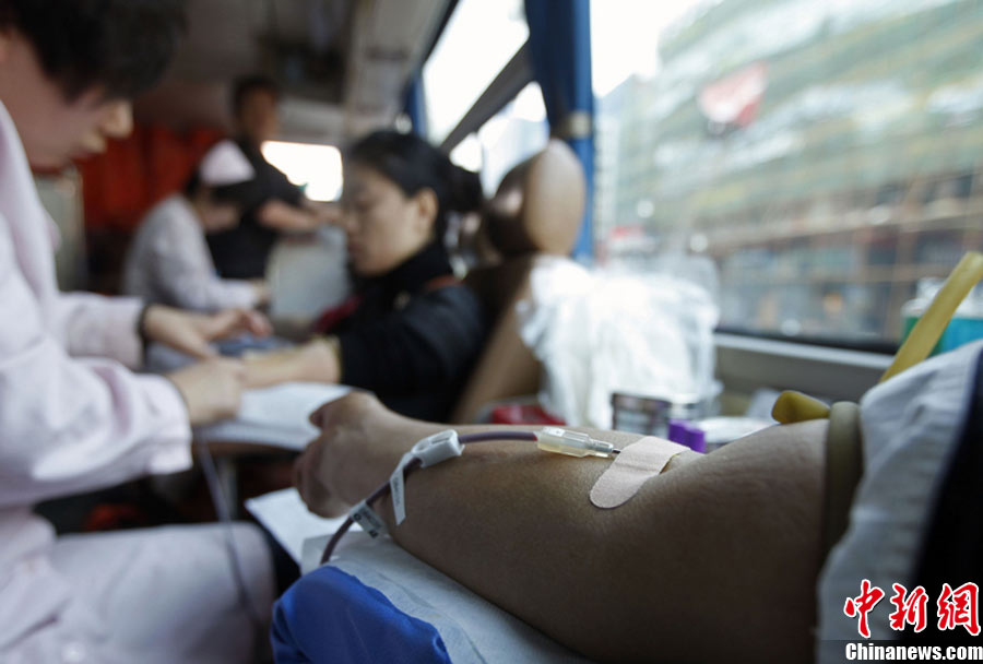 10月30日,各地市民踴躍無償獻血,應對“血荒”。圖為長春市民在義務獻血車上獻血,應對近日出現的“血荒”。圖片來源:CFP視覺中國