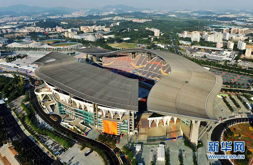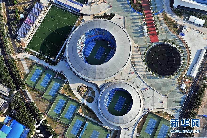 圖為航拍的廣東奧體游泳館(攝于10月29日)。在廣州亞運(yùn)會(huì)期間,廣東奧林匹克體育中心場(chǎng)館群將舉行田徑、游泳、射擊、網(wǎng)球、棒球等項(xiàng)目的比賽。劉大偉 攝 圖片來(lái)源:新華網(wǎng)