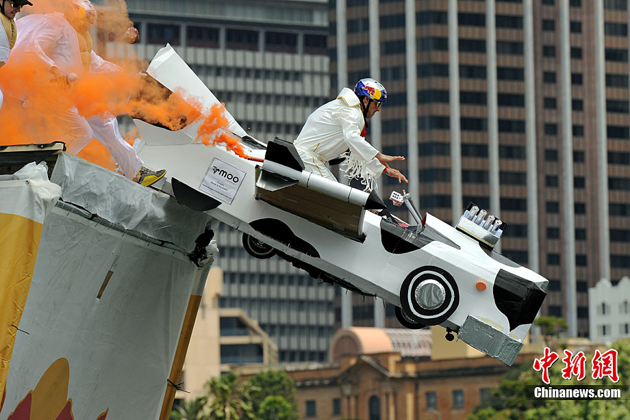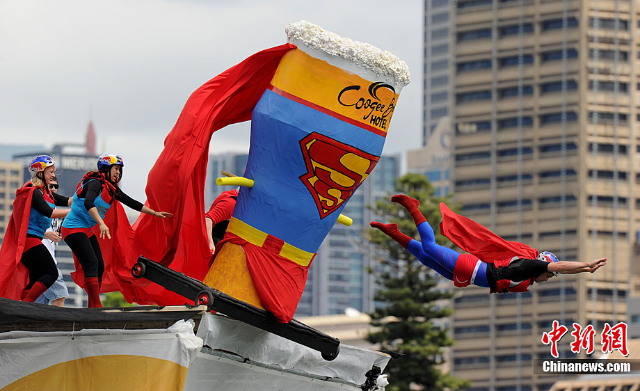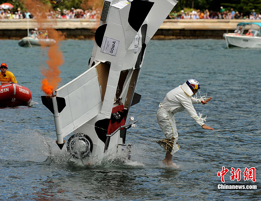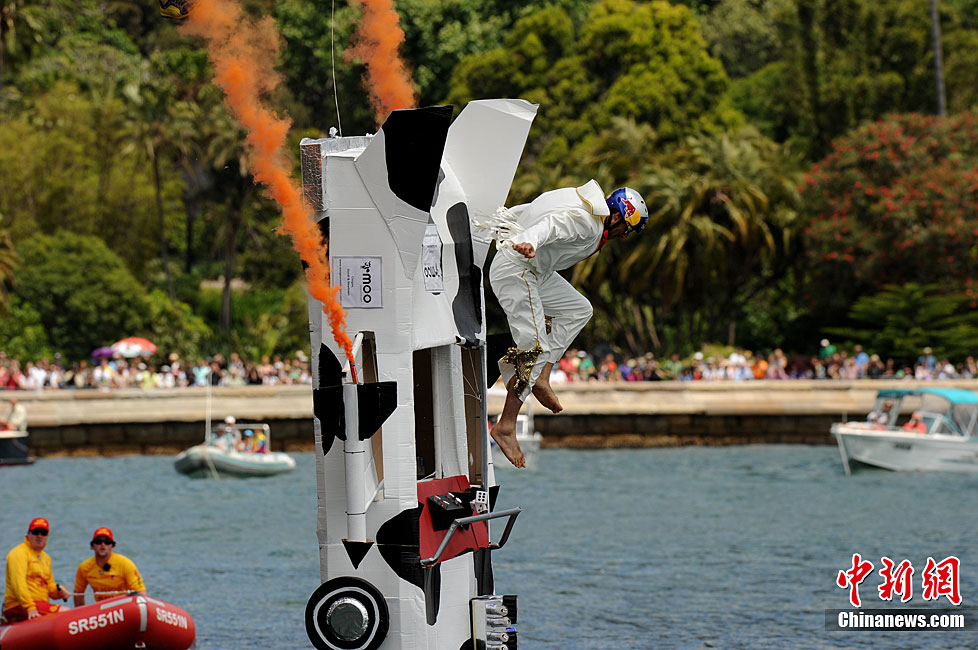 11月7日,在澳大利亞悉尼舉行了搞笑的紅牛杯“鳥人”大賽。據報道,這項賽事1991年起源于奧地利維也納,參賽選手自制人力飛行器從高臺起飛并最終躍入水中,飛行距離最遠者獲勝。