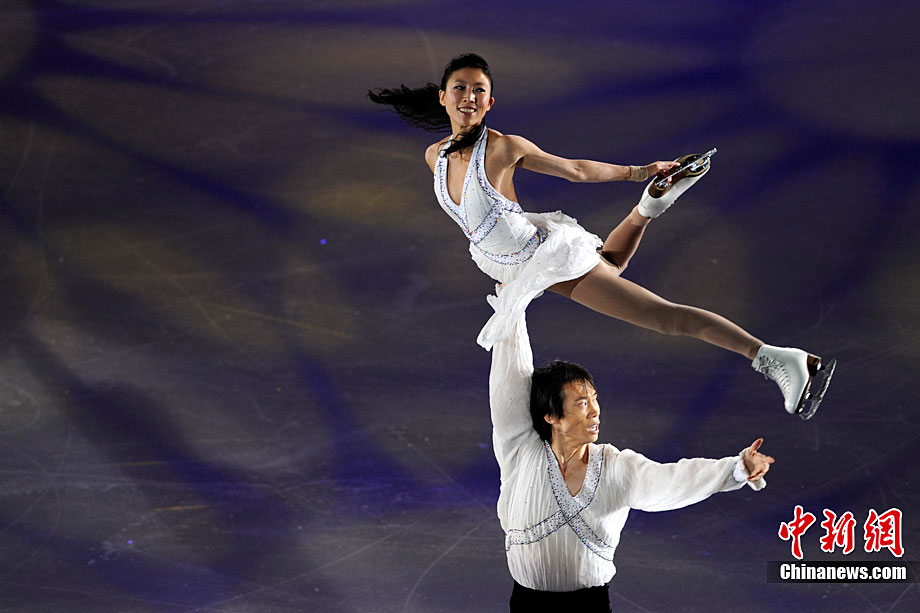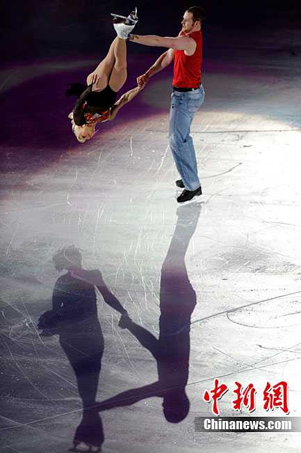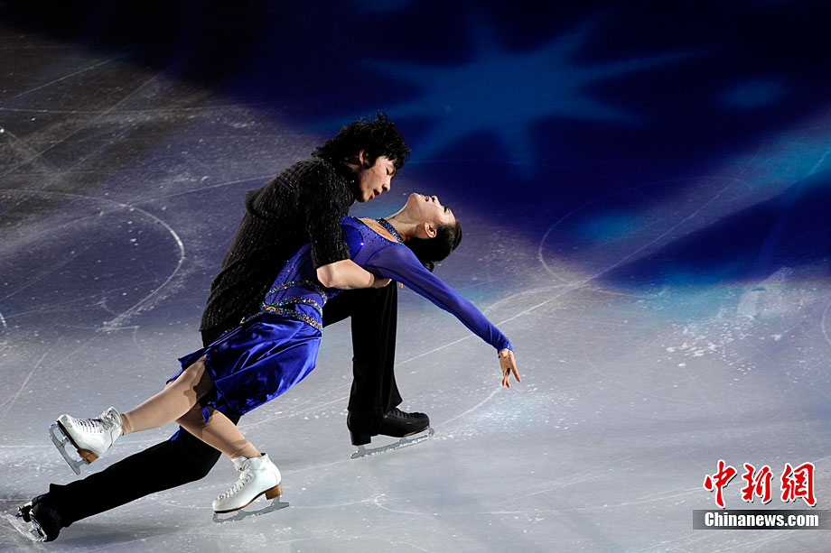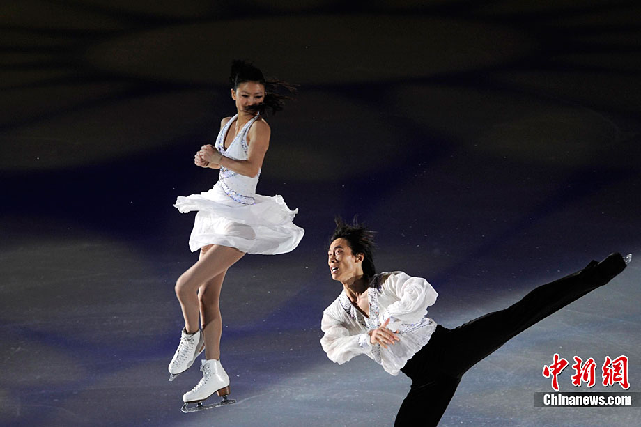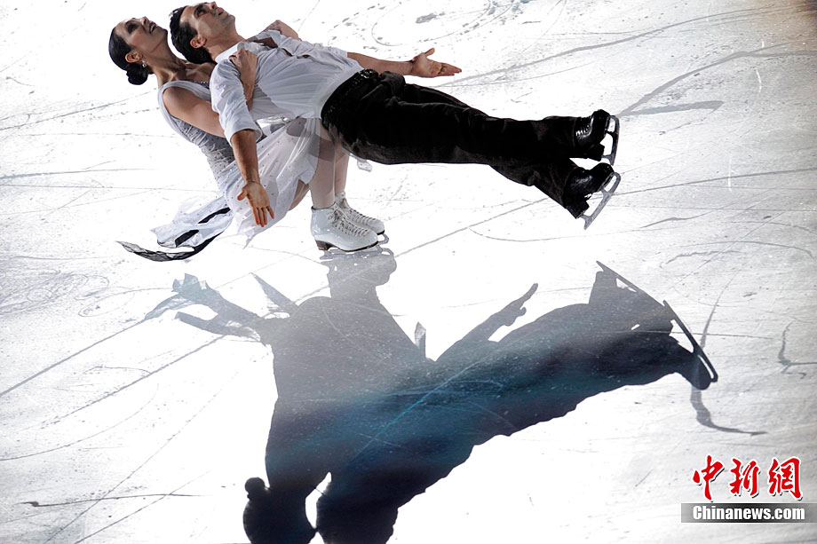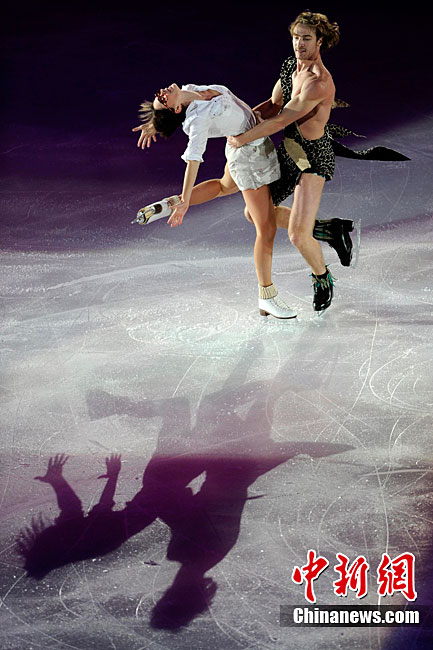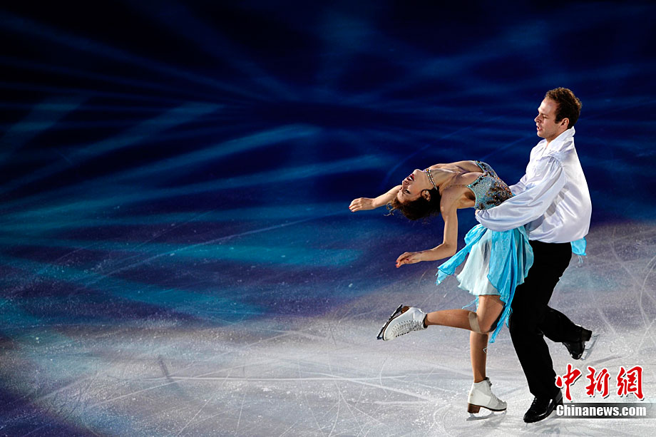 11月7日,2010年中國杯世界花樣滑冰大獎賽答謝表演在北京首都體育館進行,所有參賽運動員為觀眾奉獻上了一場美輪美奐的冰上舞蹈盛宴。中新社記者 富田 攝