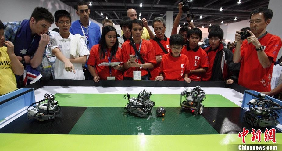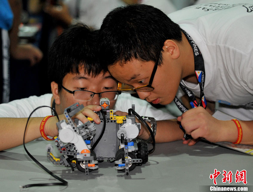 第七屆世界機器人奧林匹克競賽總決賽6日上午在菲律賓首都馬尼拉舉行。來自中國、埃及、德國、日本、墨西哥、俄羅斯、南非等30多個國家和地區的近千名青少年選手參賽,憑借智慧和動手能力展開角逐。