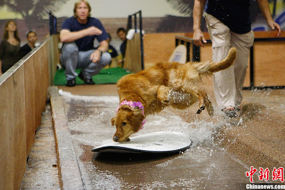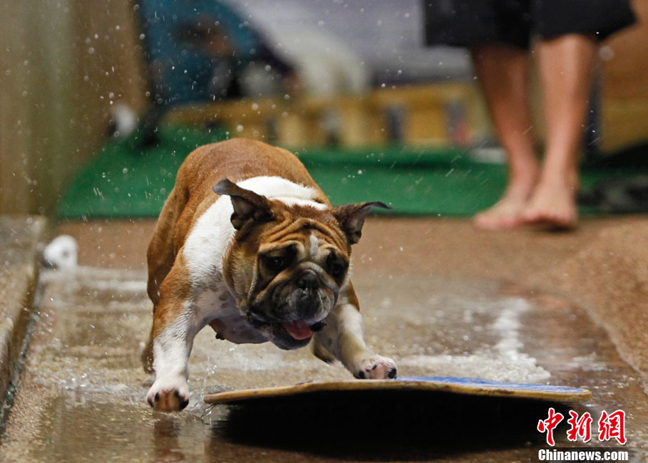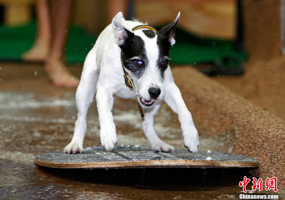 11月8日,在美國洛杉磯舉行了一場別開生面的狗狗滑水大賽,參賽的可愛狗狗們在“賽道”上展現滑水“絕技”。