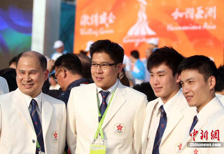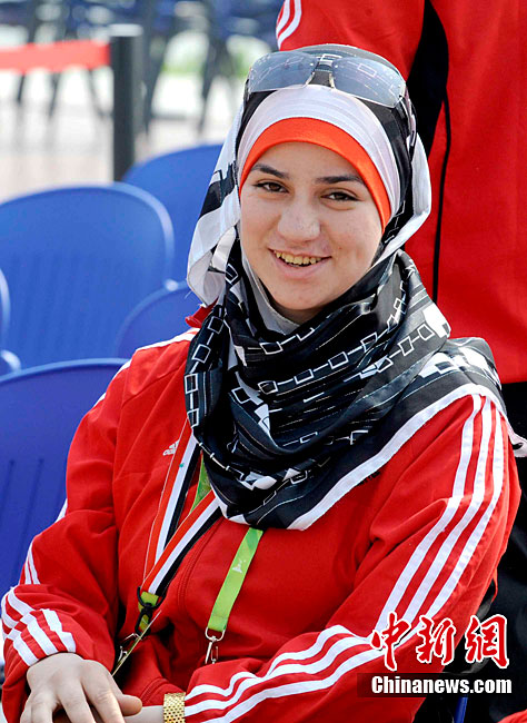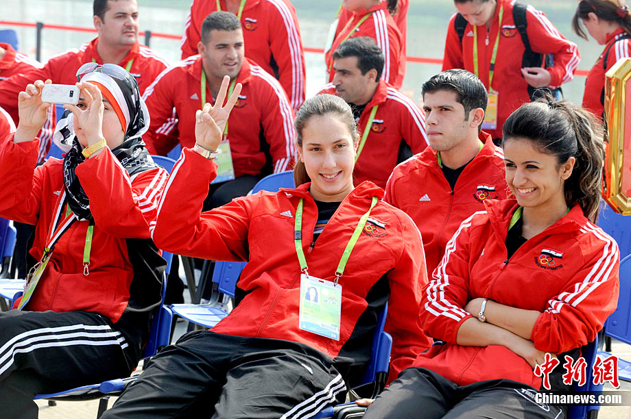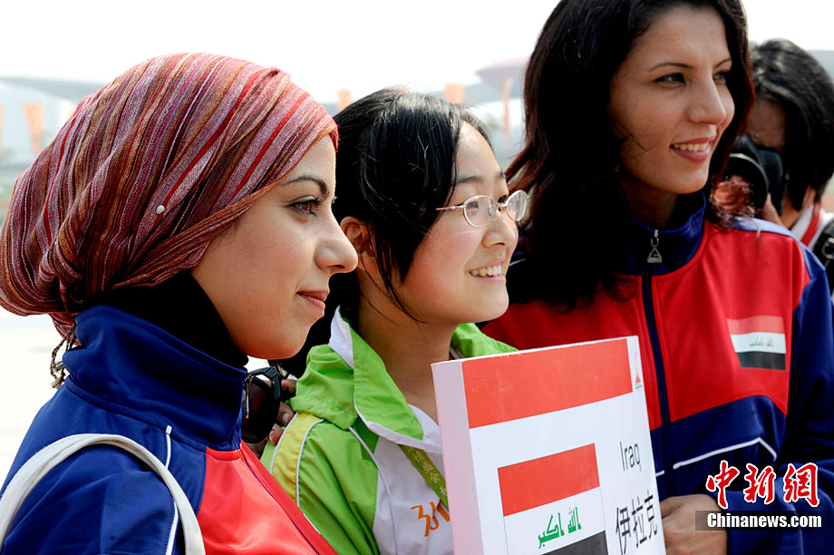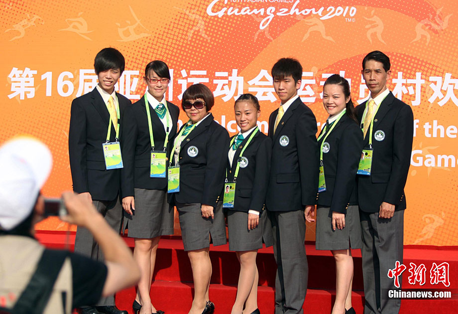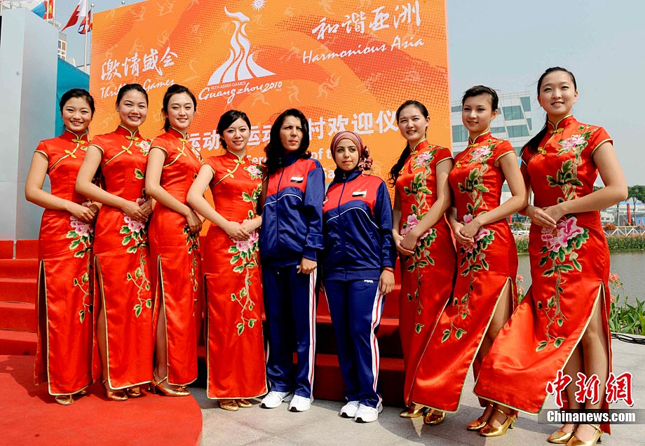11月11日,靚麗的外國女運動員亮相廣州亞運村,當天,敘利亞、伊拉克、尼泊爾代表團在亞運村舉行升旗儀式。中新社記者 王東明 攝