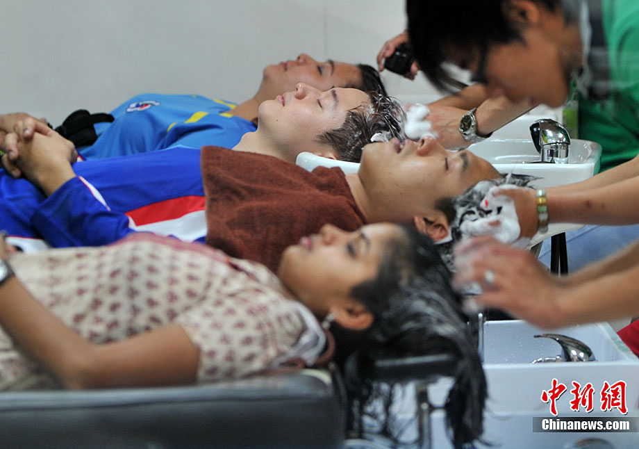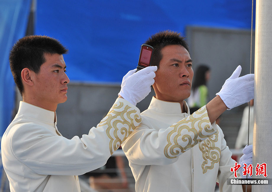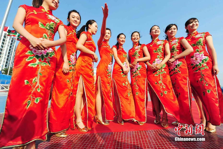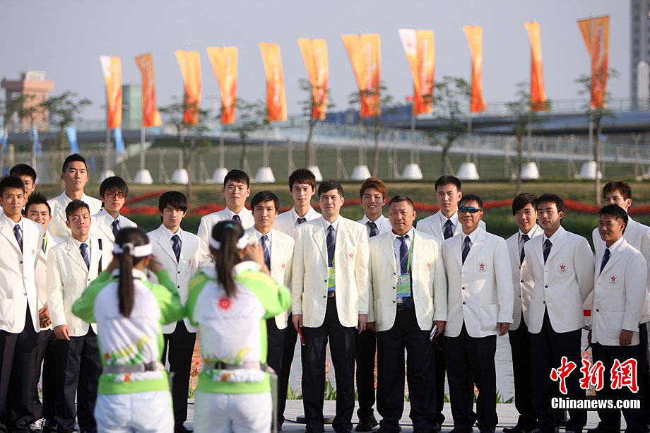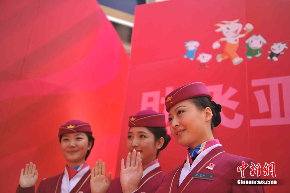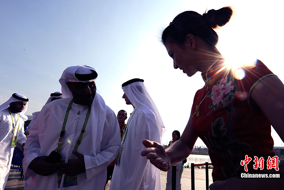 11月11日,靚麗的外國女運動員亮相廣州亞運村,當天,敘利亞、伊拉克、尼泊爾代表團在亞運村舉行升旗儀式。中新社記者 王東明 攝
