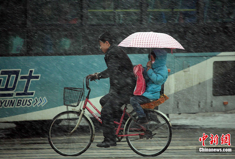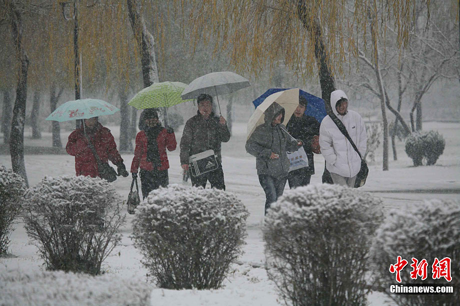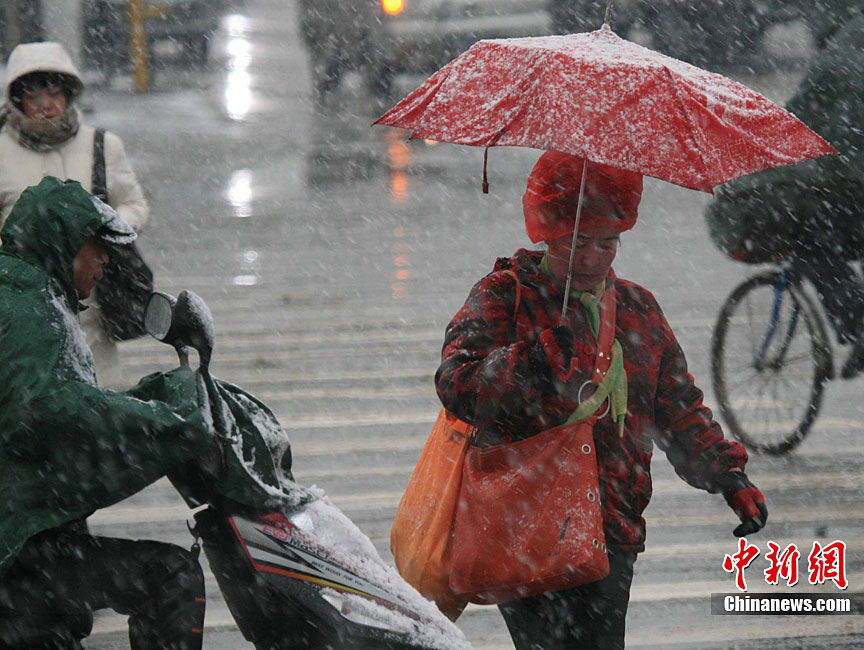 11月13日,遼寧沈陽普降大雪,市民出行不便。圖片來源:CNSPHOTO 黃金昆 攝