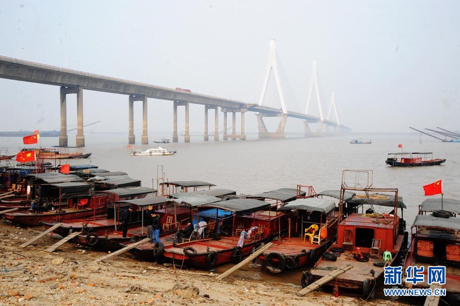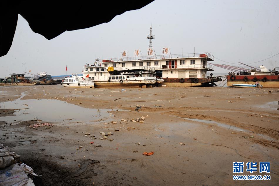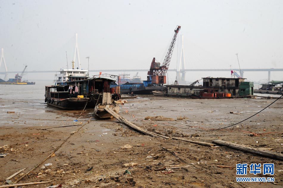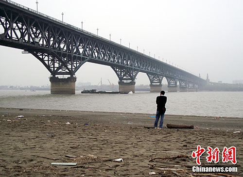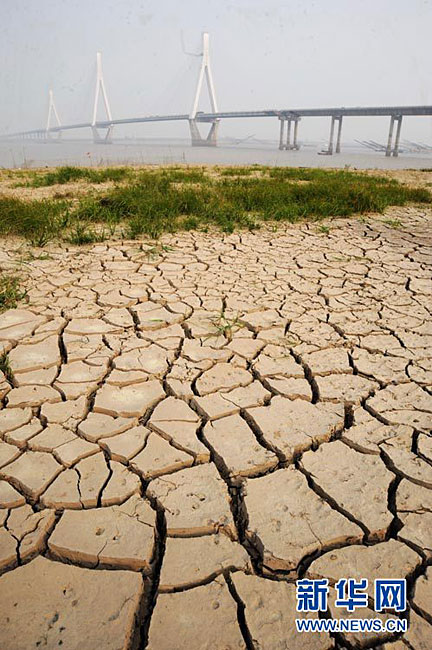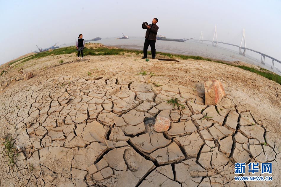 截至2010年11月14日17時,長江南京段水位降至4.08米,大片江岸河床裸露。近期,受中上游枯水和區(qū)域降雨量減少等因素影響,長江南京段水位連續(xù)下降。圖為11月14日,長江南京段南側江岸河床裸露,土層龜裂。圖片來源:CNSPHOTO 安東 攝