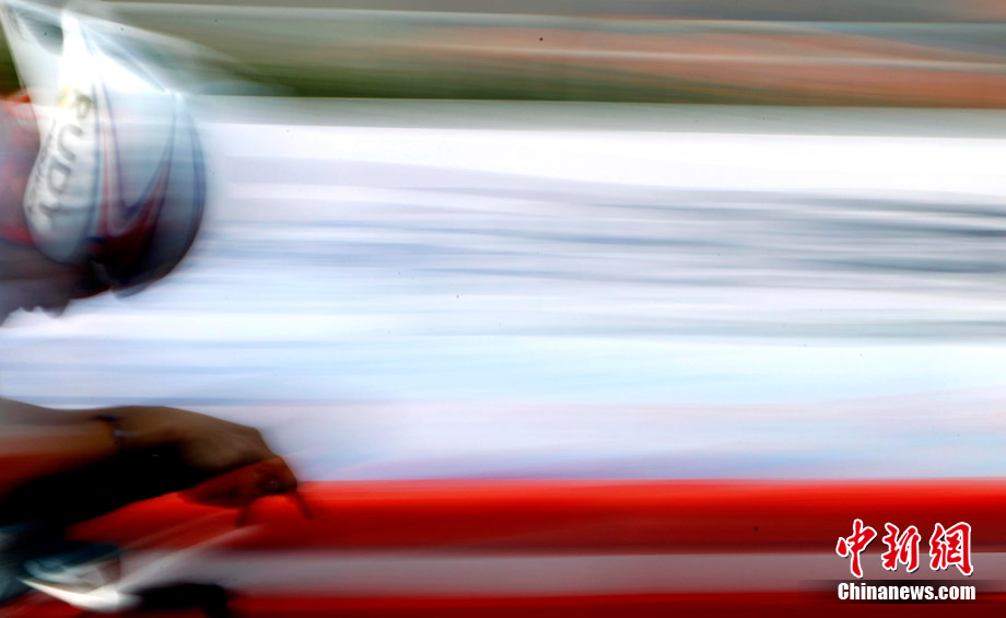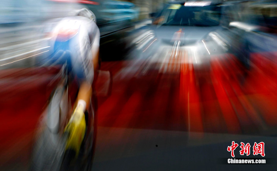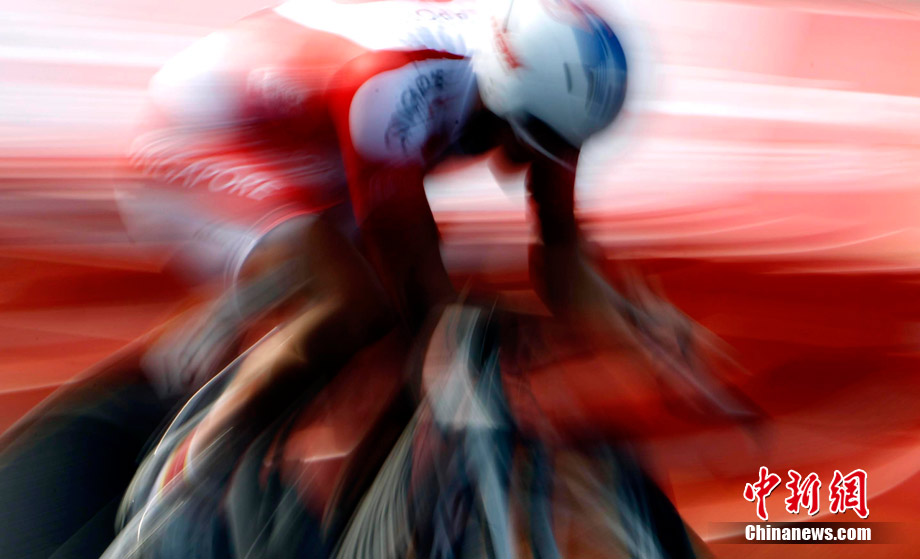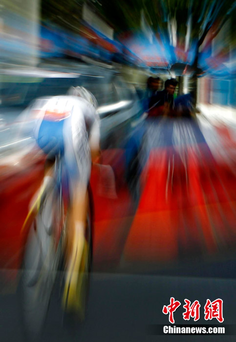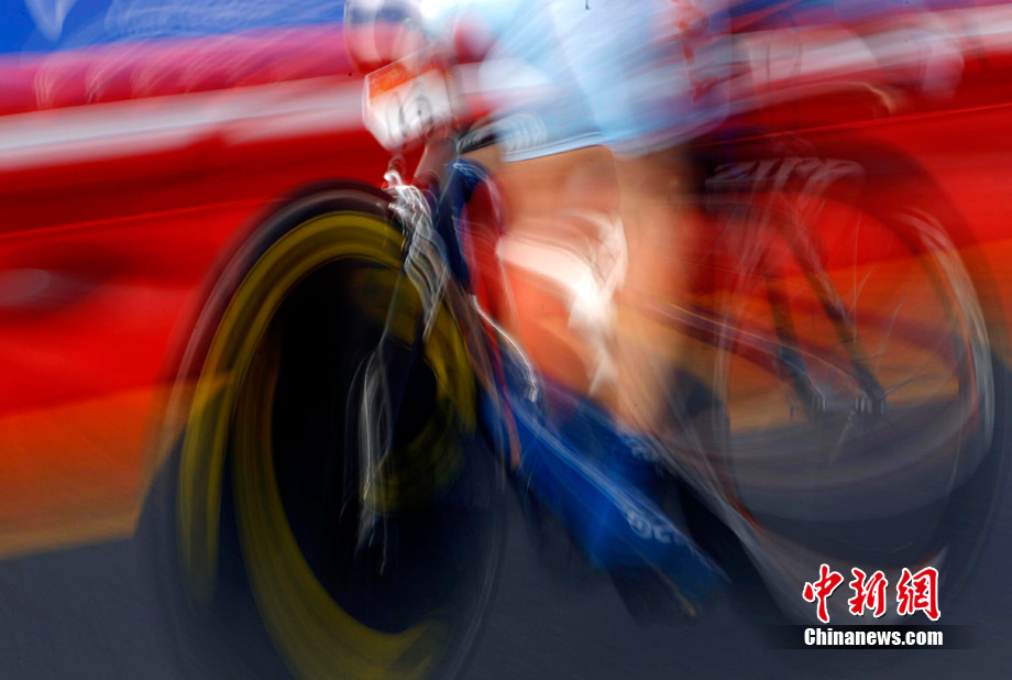 11月20日,廣州亞運會男子公路個人計時賽中的動感瞬間,仿佛將人帶入一個新奇的科幻世界。中新社記者 杜洋 攝