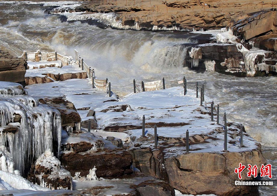 12月17日,黃河壺口冰凍瀑布在陽光照射下異常美麗,引得八方游客前來觀賞美景。據了解,這是由于近期受冷空氣影響,形成的美麗自然景觀。張旦 攝 圖片來源:CNSPHOTO