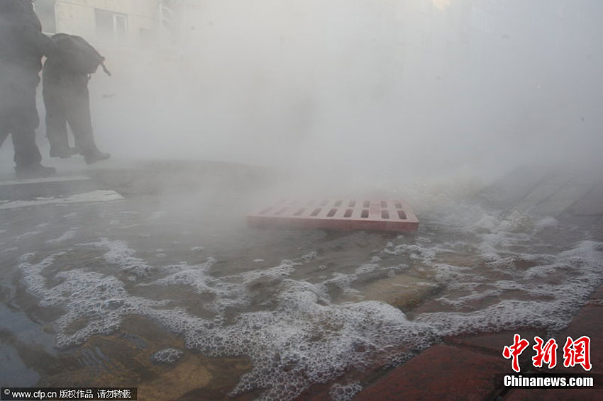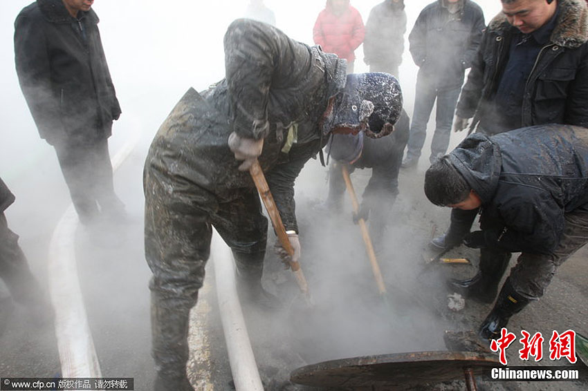 近日,黑龍江省哈爾濱市供熱管線接連爆裂。從12月14日至今,道里區、道外區約12萬戶居民供暖中斷。華能公司經理趙世雷解釋說,造成這幾次大的停熱事故的主要原因是補償器破裂。18日夜間開始,哈爾濱市降下大雪,最低氣溫接近零下30攝氏度。小剛 攝 圖片來源:CFP視覺中國