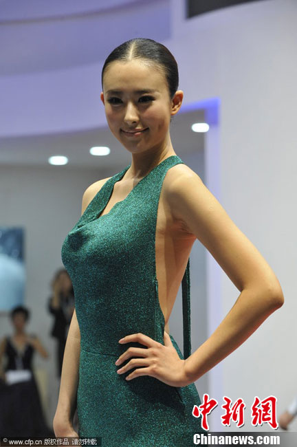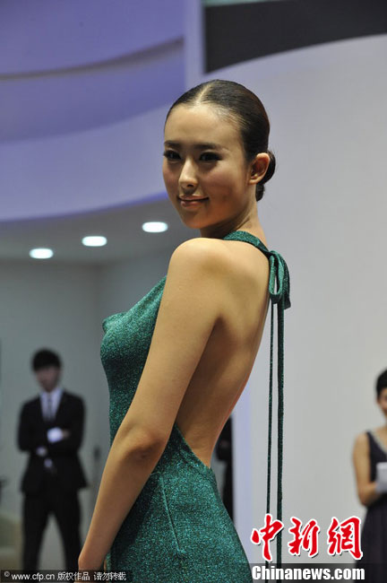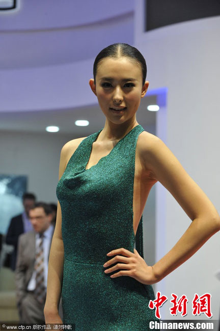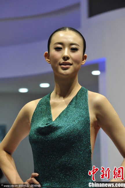 12月20日,2010廣州車展舉行,淡出車展許久的名模“獸獸”翟凌助陣西班牙超級跑車展臺。一襲露背綠裙的她驚艷全場。江心 攝 圖片來源:CFP視覺中國